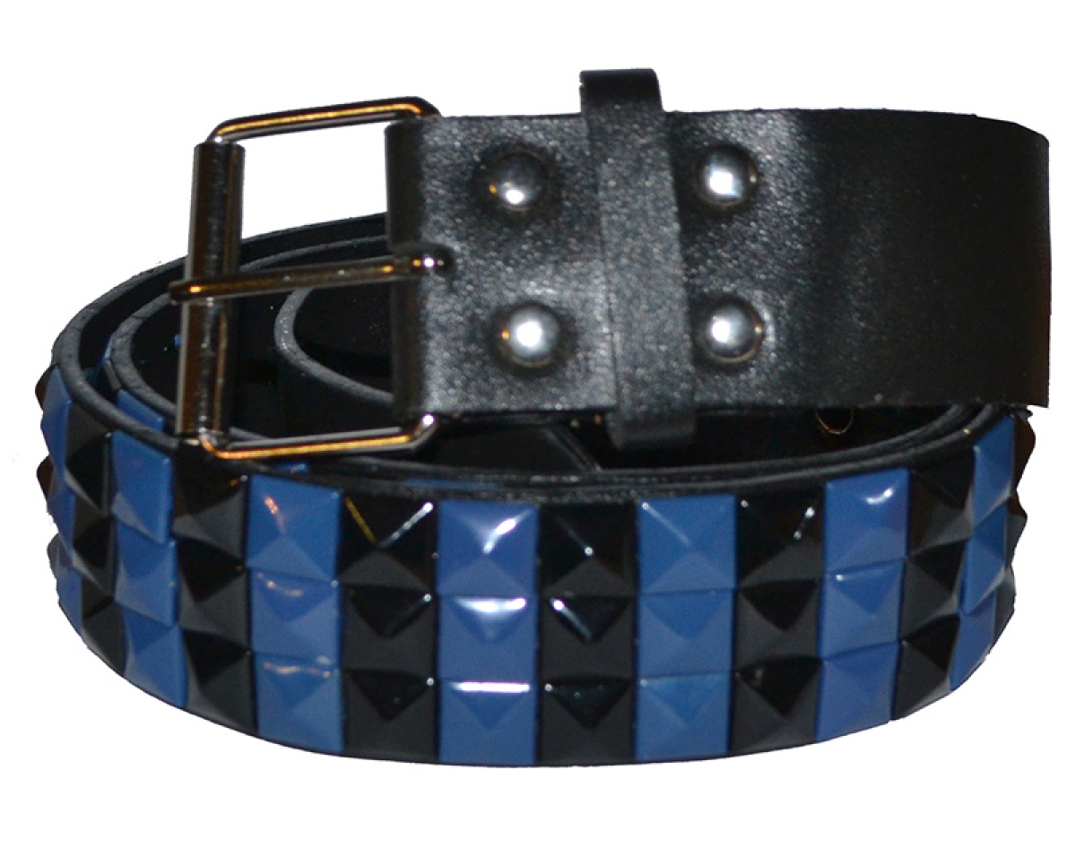 3 Rows Black and Blue Rivet (Leatherette) Belt