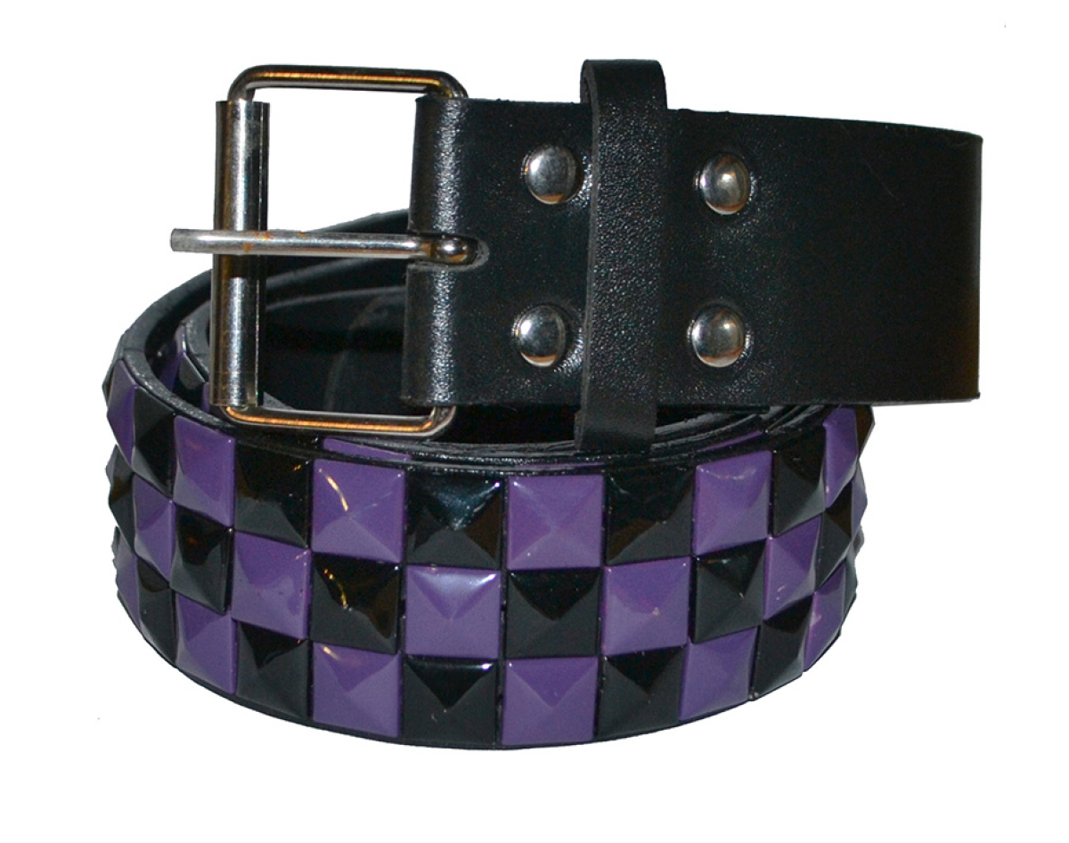 3 Rows Black and Purple Rivet (Chess) (Leatherette) Belt