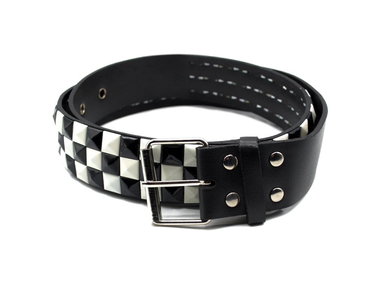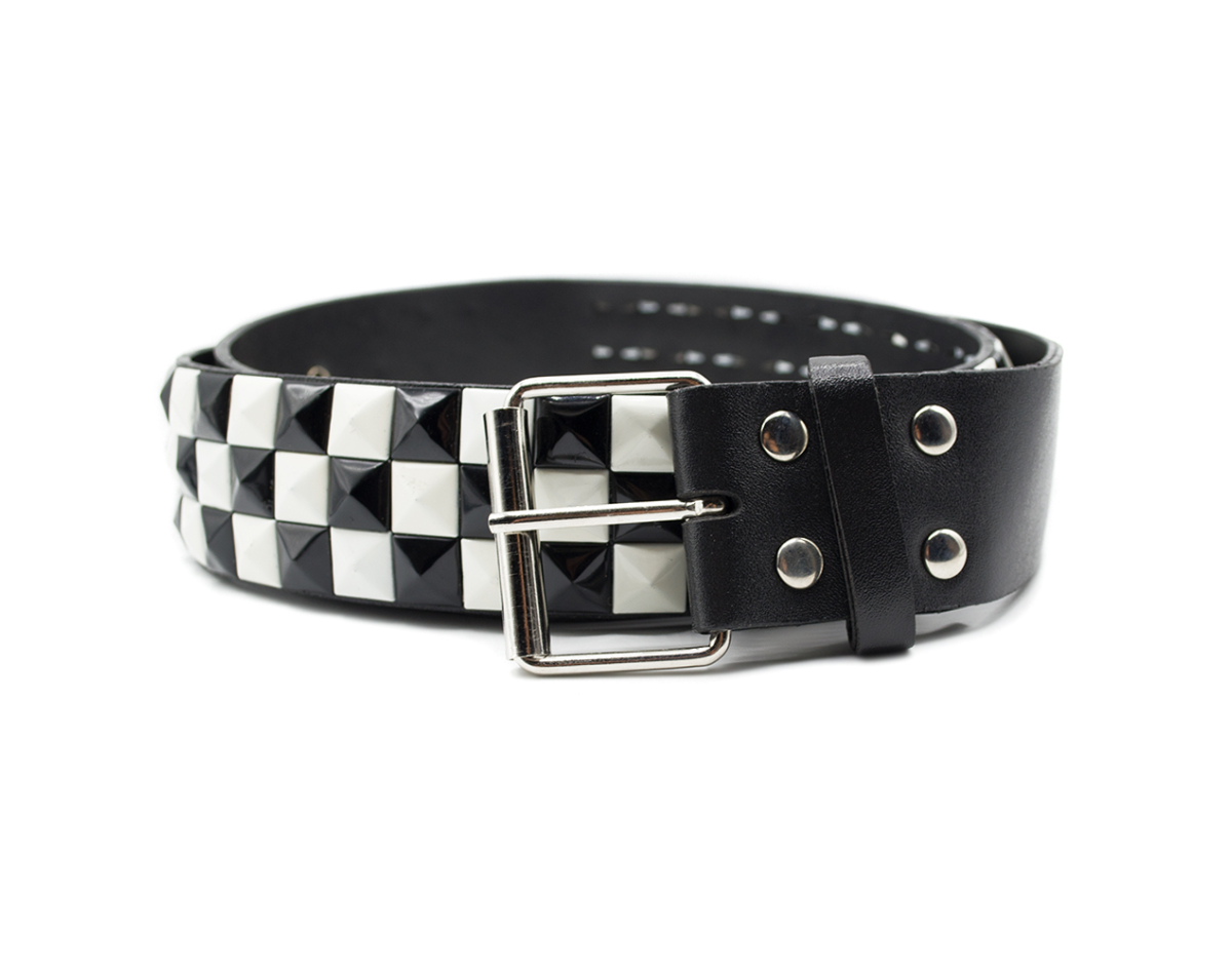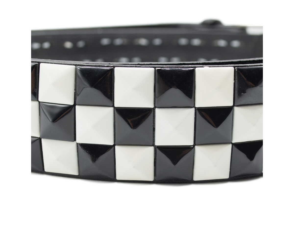 3 Rows Black and White Riveted (checkerboard) Leatherette Belt