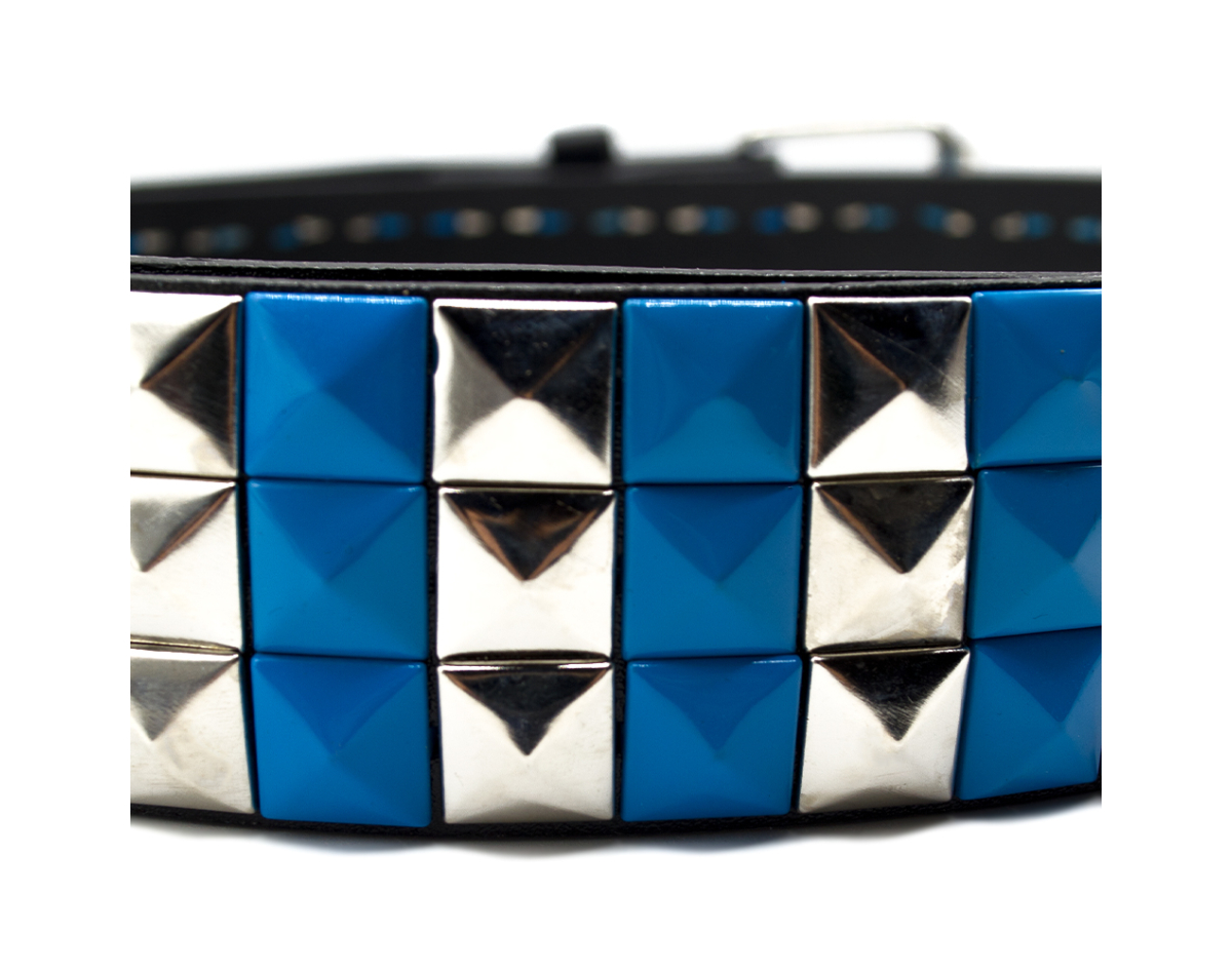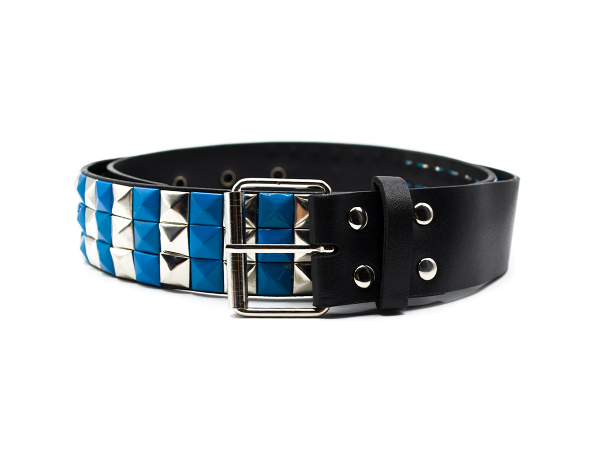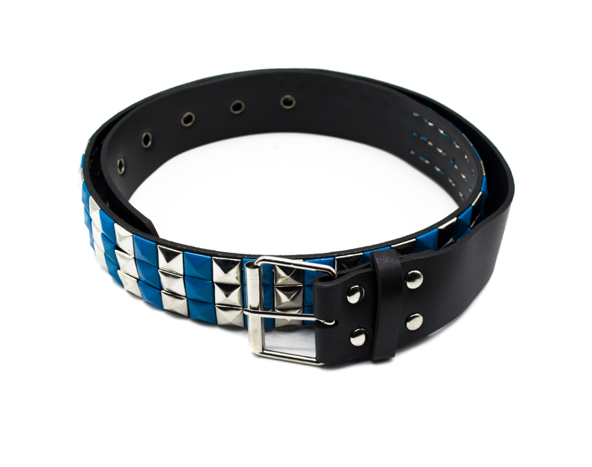 3 Rows Metal and Blue Riveted (zebra) Leatherette Belt
