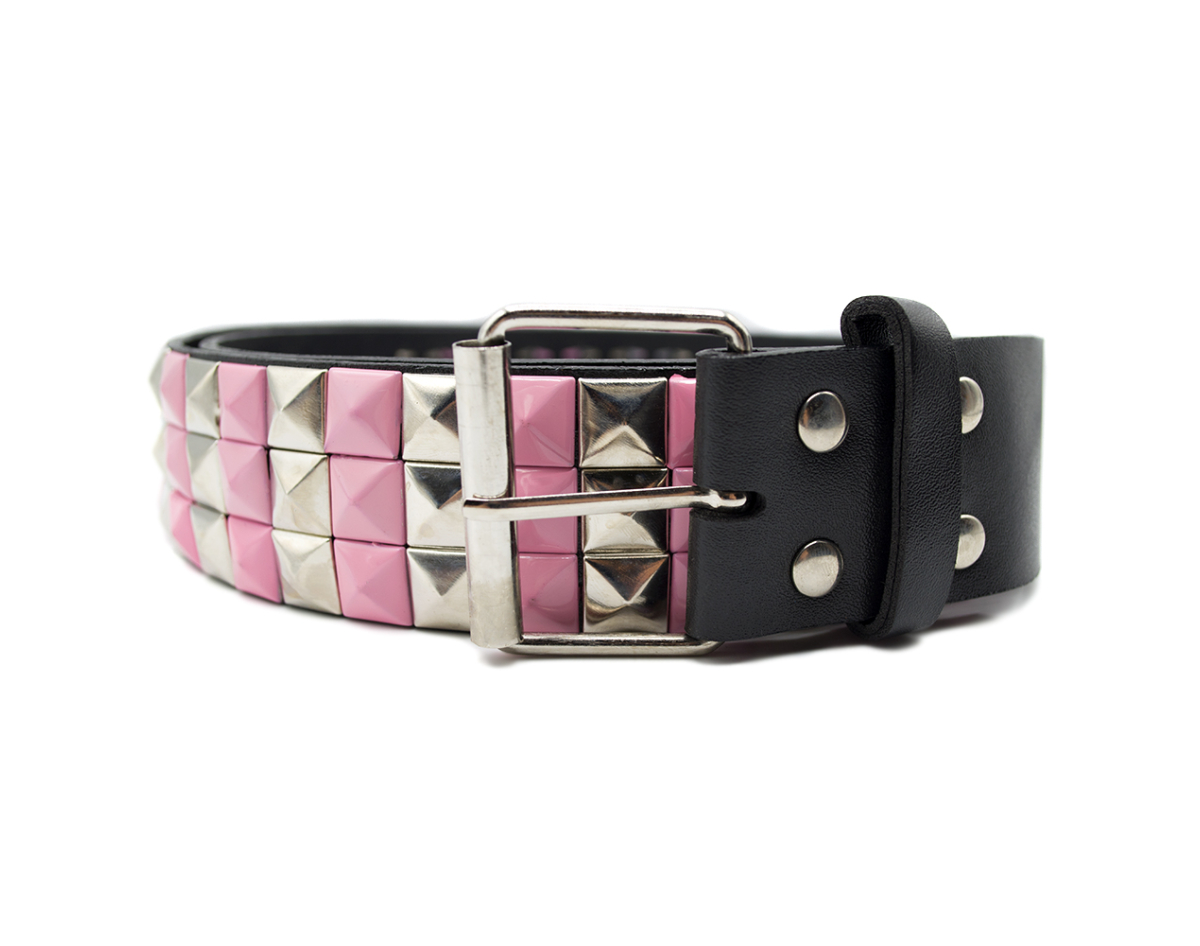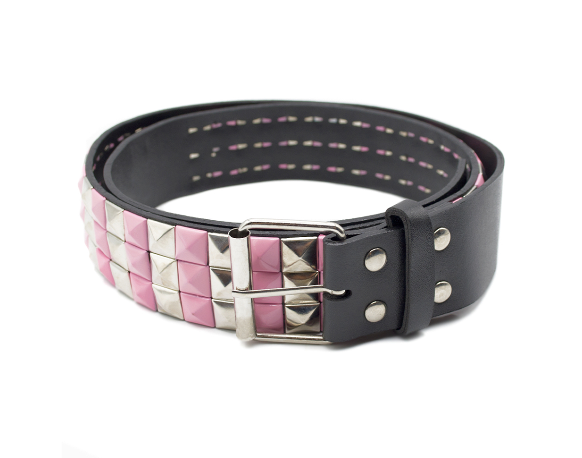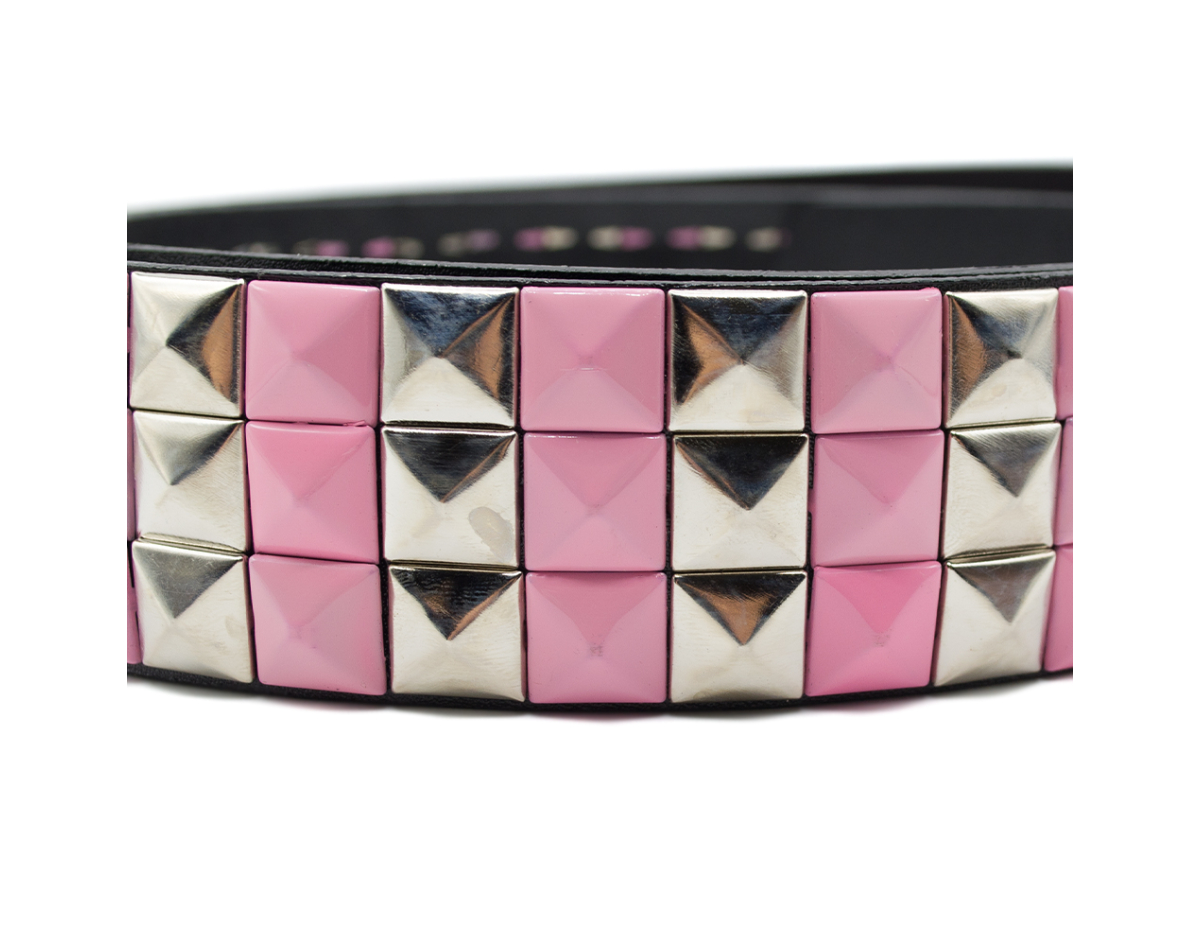 3 Rows Metal and Pink Riveted (zebra) Leatherette Belt