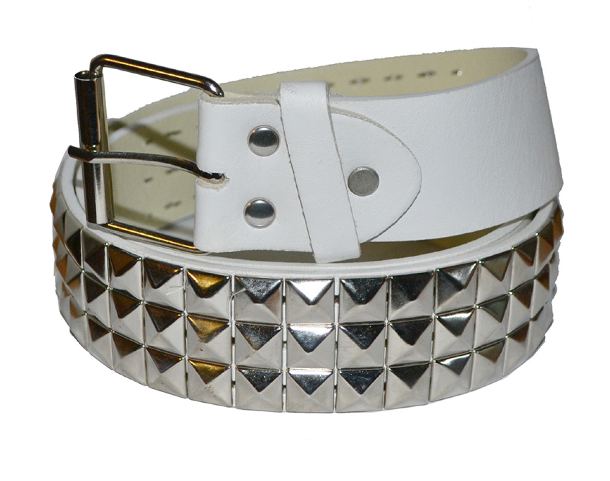 3 Rows Metal Rivet (White Cloth) (Leatherette) Belt