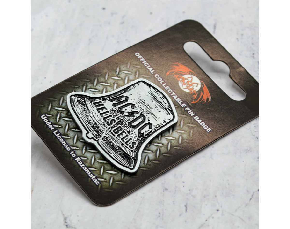 AC/DC "Hells Bells" pin (pnol-001) This product is officially licensed merchandise (Officially Licensed). The pin is made of a metal alloy. Thanks to two needles on the back side, you will be able to fix it securely, while it will not twist. Each pin is packaged in a blister pack, has a presentable appearance, it is an ideal gift for true fans of the band. Made in Great Britain