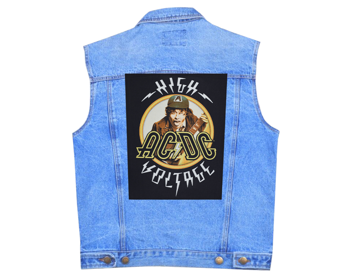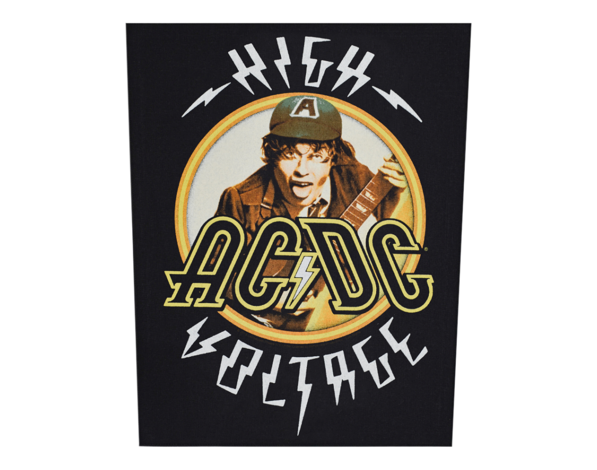AC/DC "High Voltage" back patch (olbp-019) Height 35.5 cm, width at the top edge 29 cm, width at the bottom edge 26 cm This product is Officially Licensed Backpath merch. Back patch of high premium quality. The edges of the patch are trimmed with overlock, which is why the stitching looks as neat as possible. The image was applied using the stencil method, the high level of detail indicates the imperfect paint of the paint. The patch is sewn on, soft, perfectly repeatable on the waistband. Fabric warehouse: cotton/polyester. Made in Great Britain
