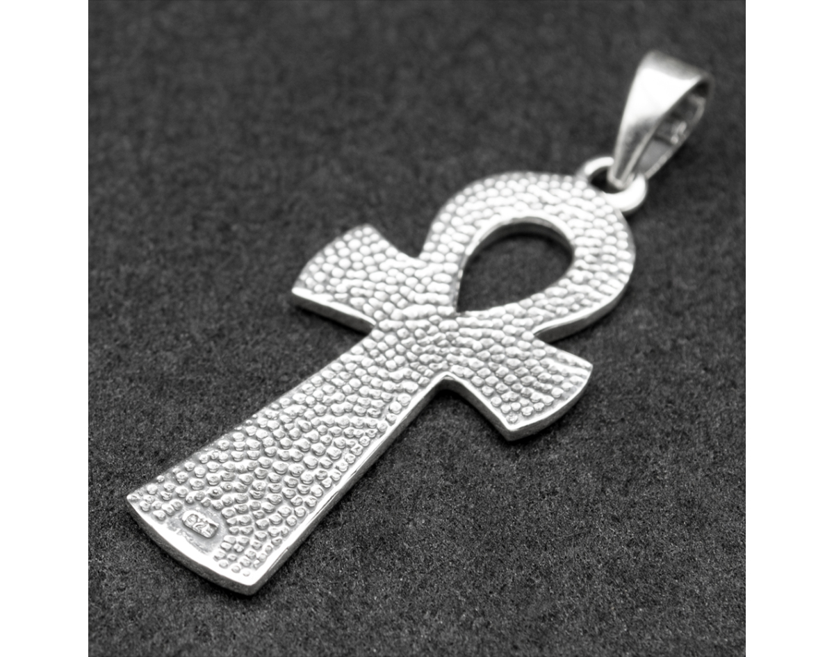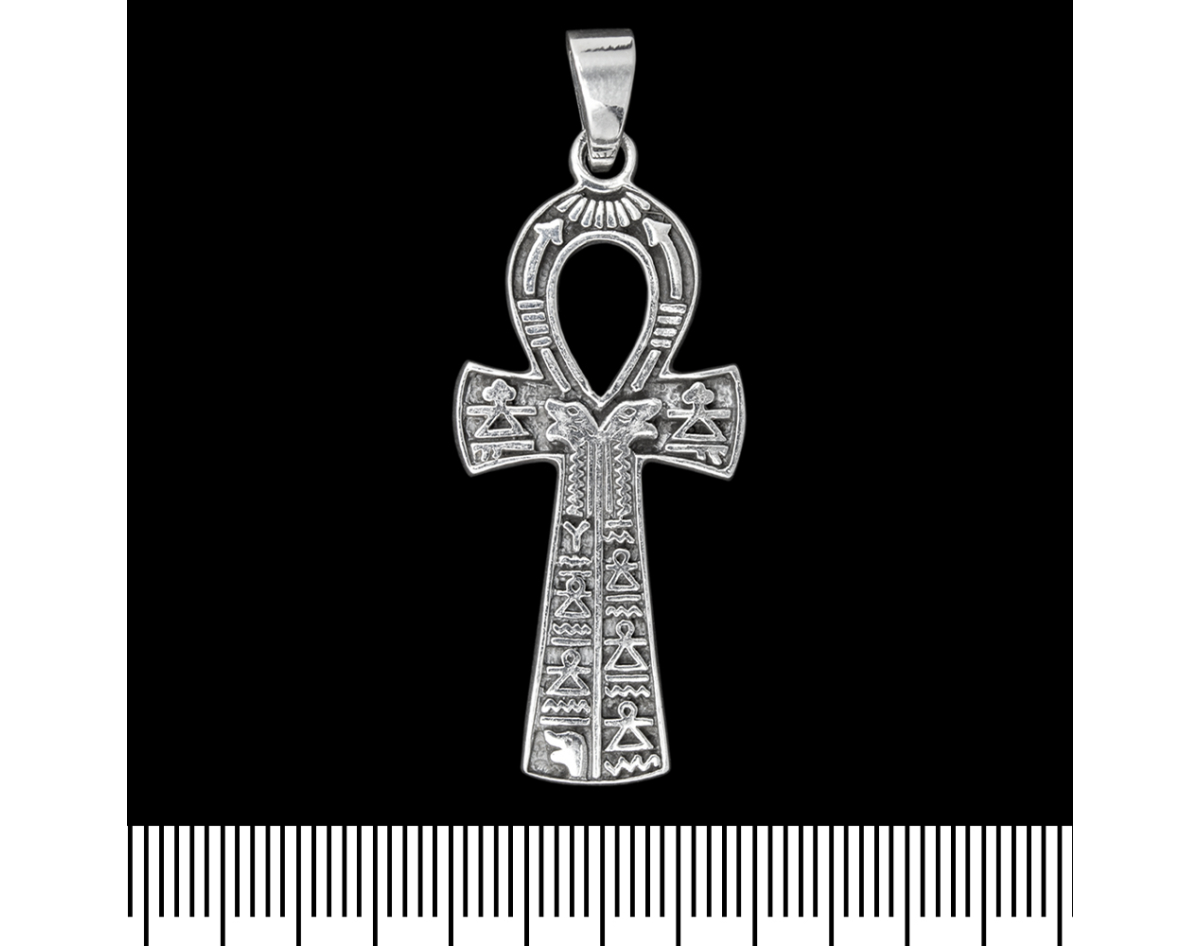 Ankh pendant with Egyptian hieroglyphs (silver, 925 assay value) (sp-174) 6.1 grams, height 44 mm, width 20 mm, size of the eye for the chain 6x4 mm