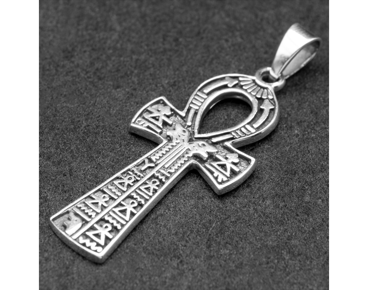 Ankh pendant with Egyptian hieroglyphs (silver, 925 assay value) (sp-174)