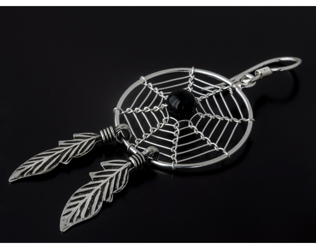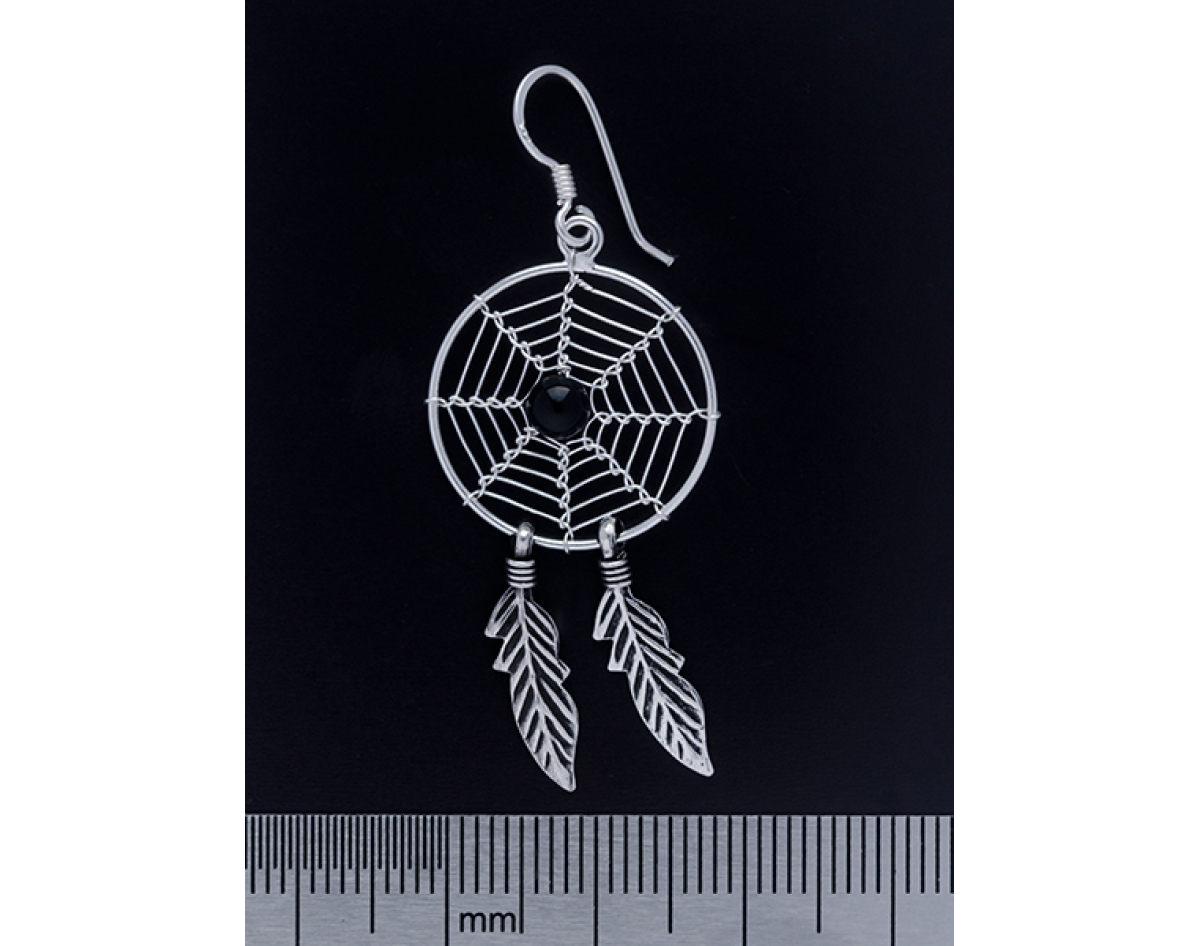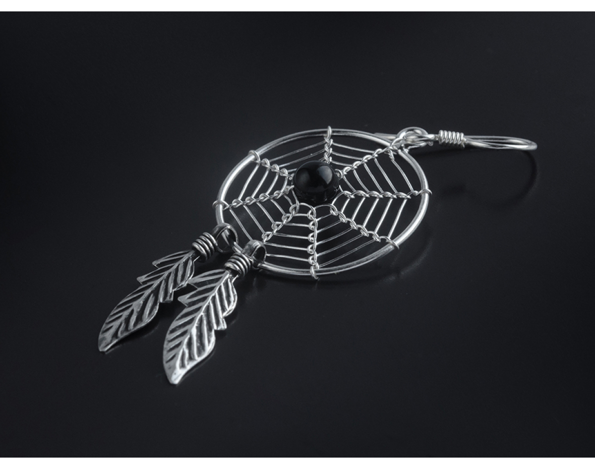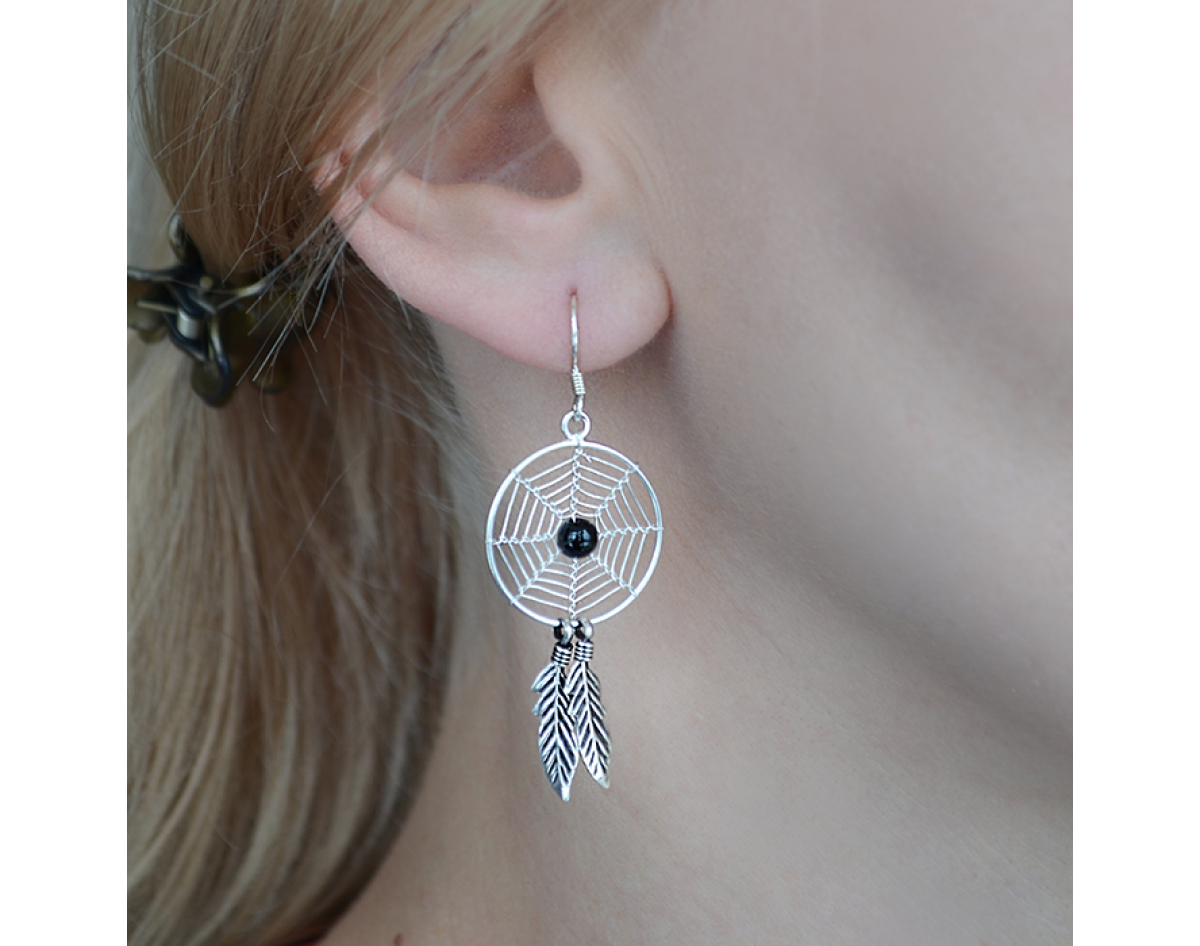 Big Dream Catcher with a Black Stone (eas-045) Earring