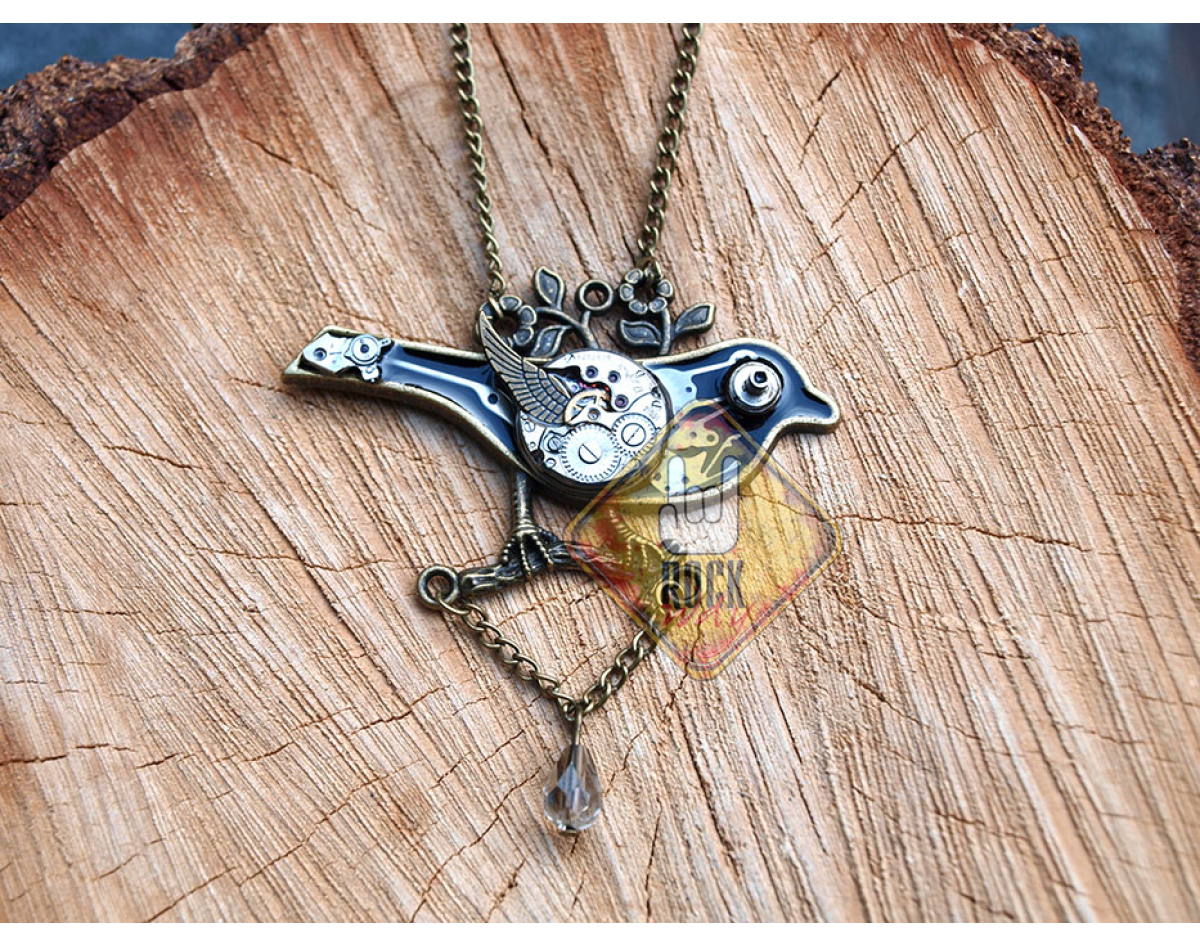 Bird on a Branch with a Chain (Steampunk) Pendant