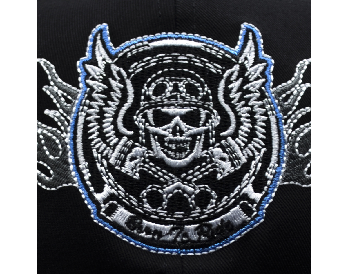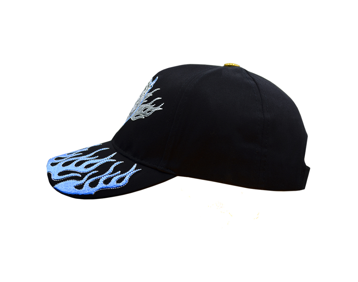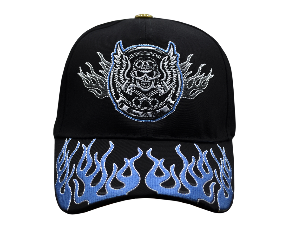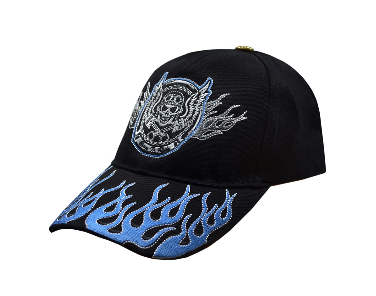 Born To Ride(Blue Flame, Skull and Wings) Embroidered Baseball Cap