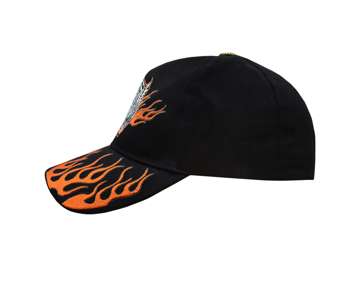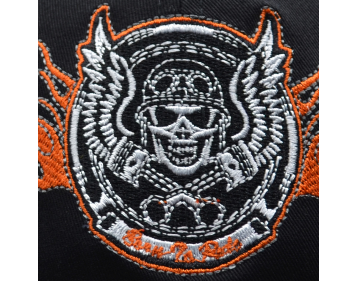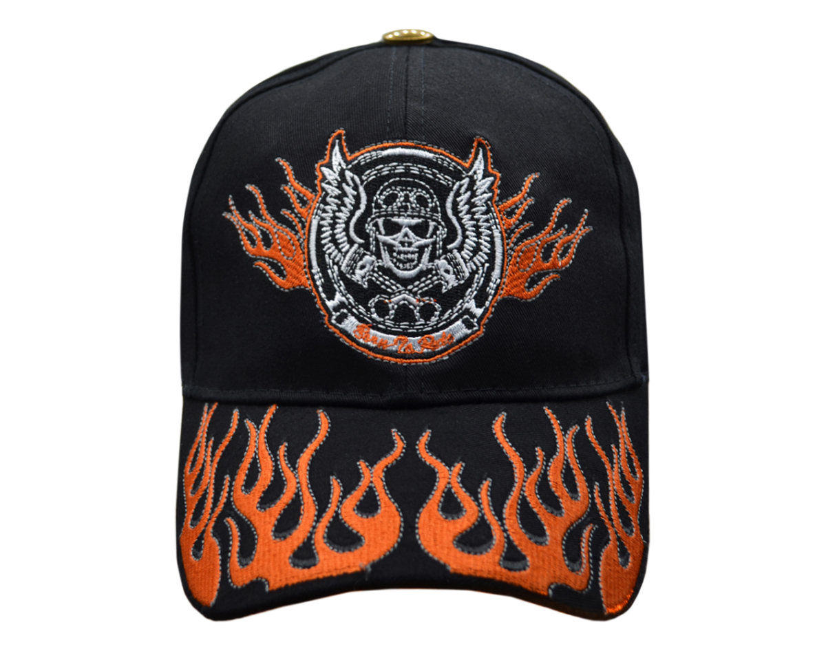 Born To Ride (Orange Flame, Skull and Wings) Embroidered Baseball Cap