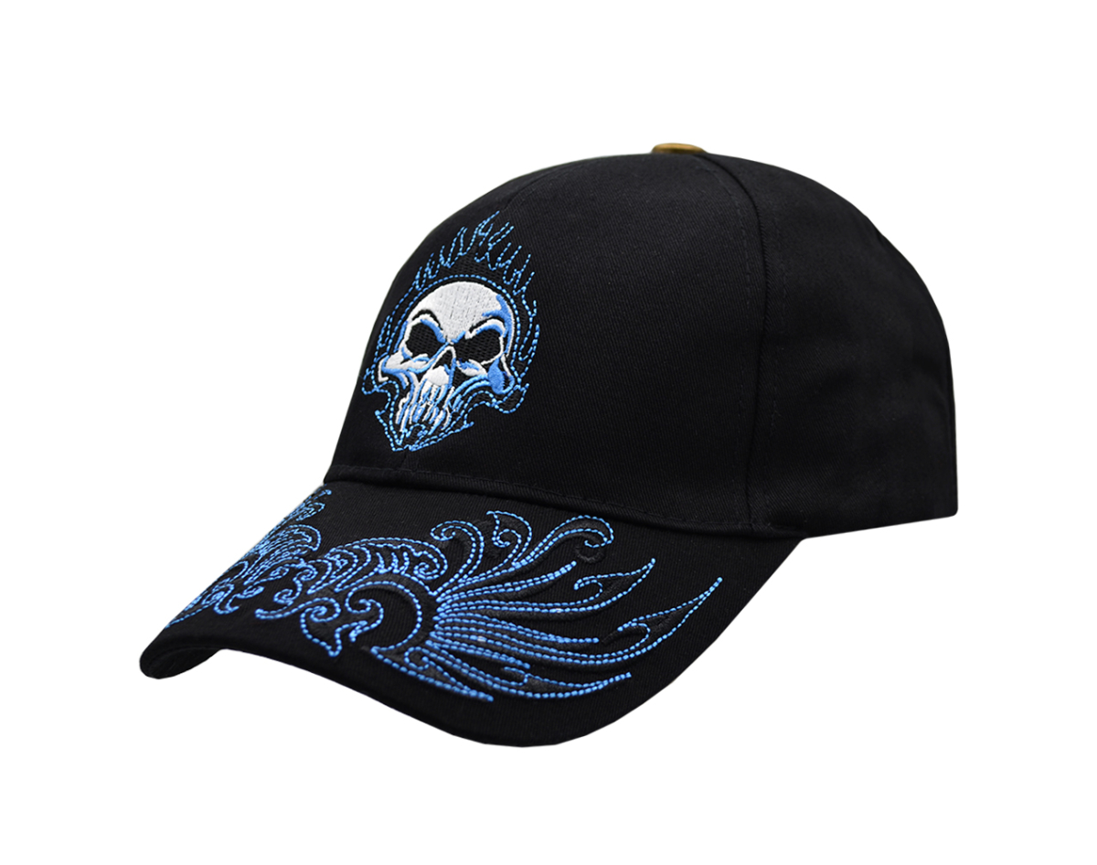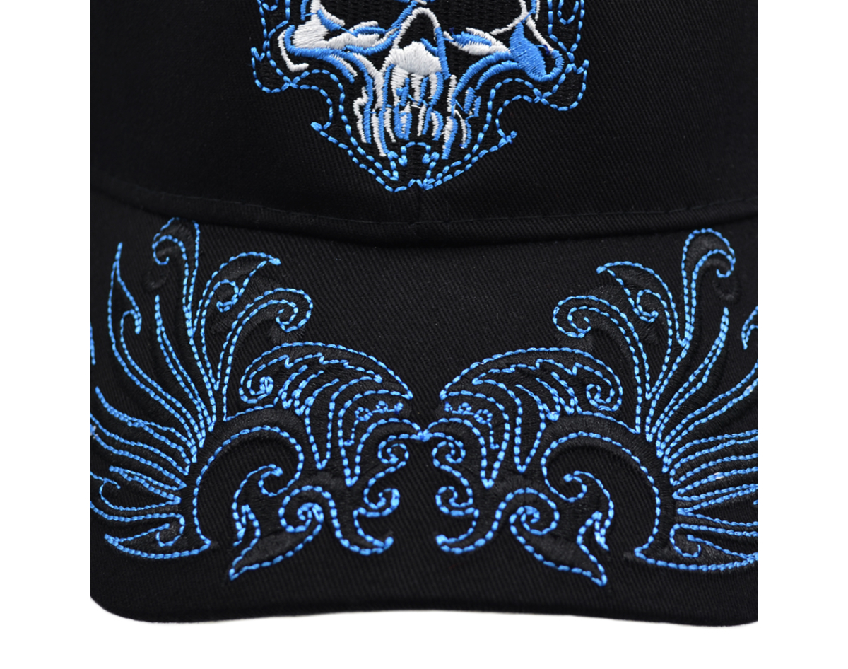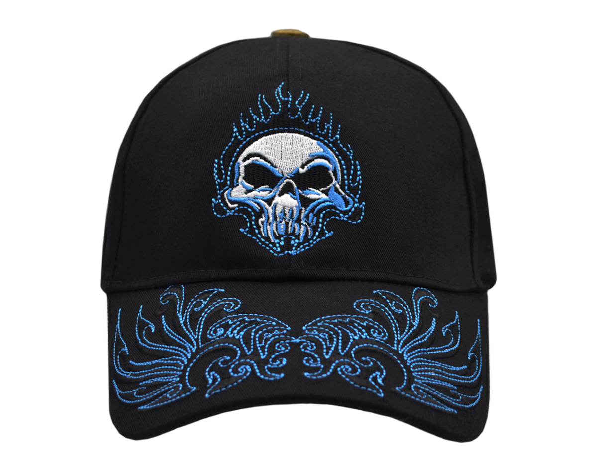 Burning Skull (Blue) Embroidered Baseball Cap