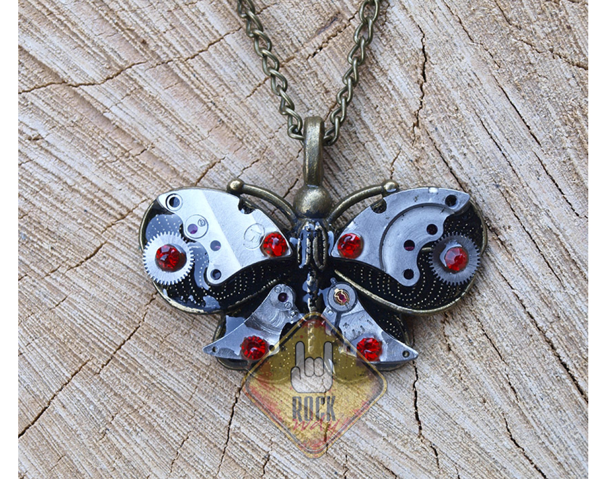 Butterfly with Red Stones (Steampunk) Pendant