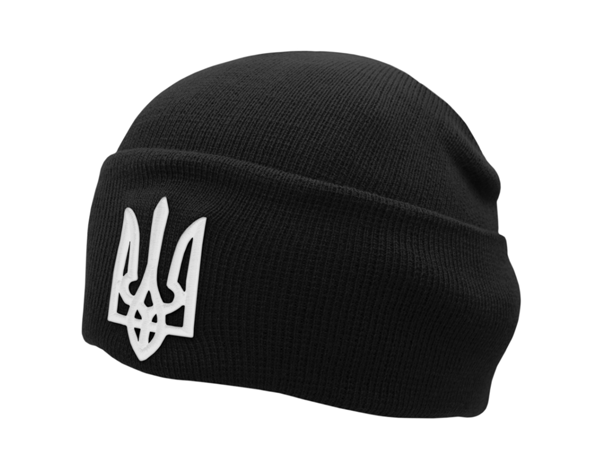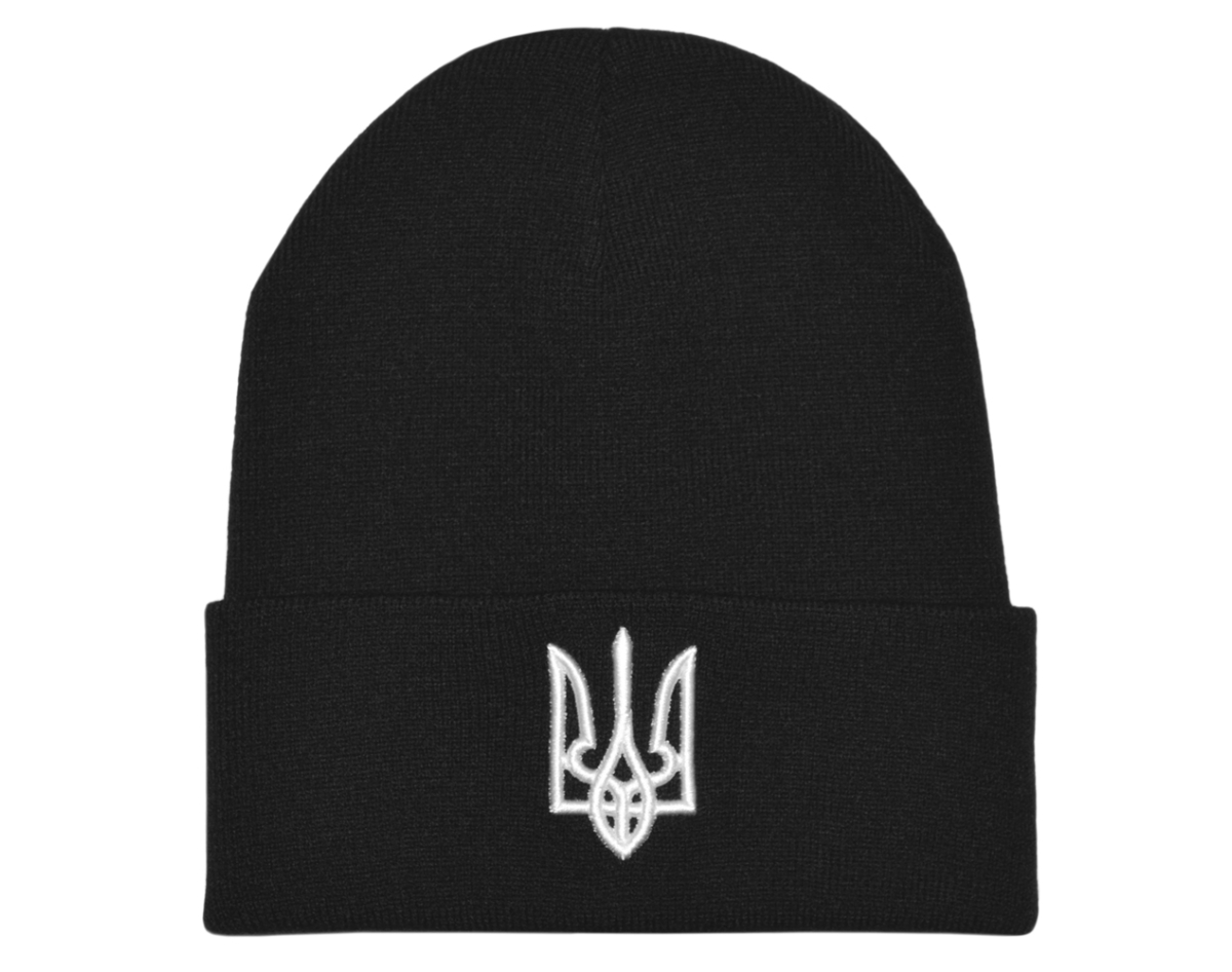 Cap knitted with a Trident (black with a white trident) (uaht-004)
