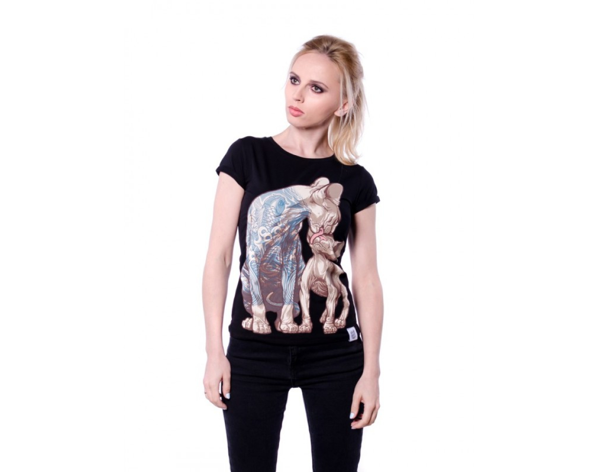 Cat with Tattoos Urbanist Women's Black T-Shirt
