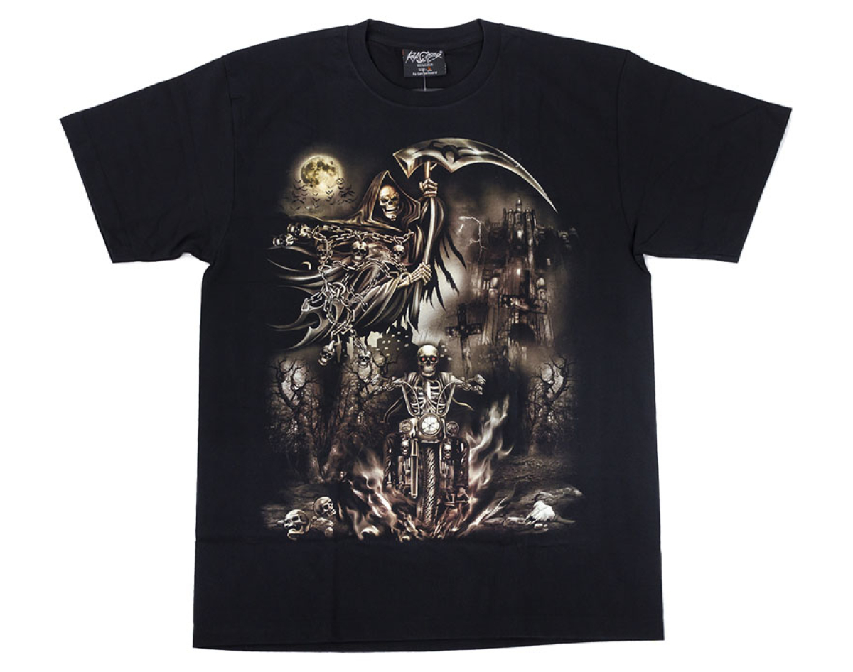 Death on a Motorcycle (Death on the Background of the Castle) (Glows in the Dark) T-Shirt