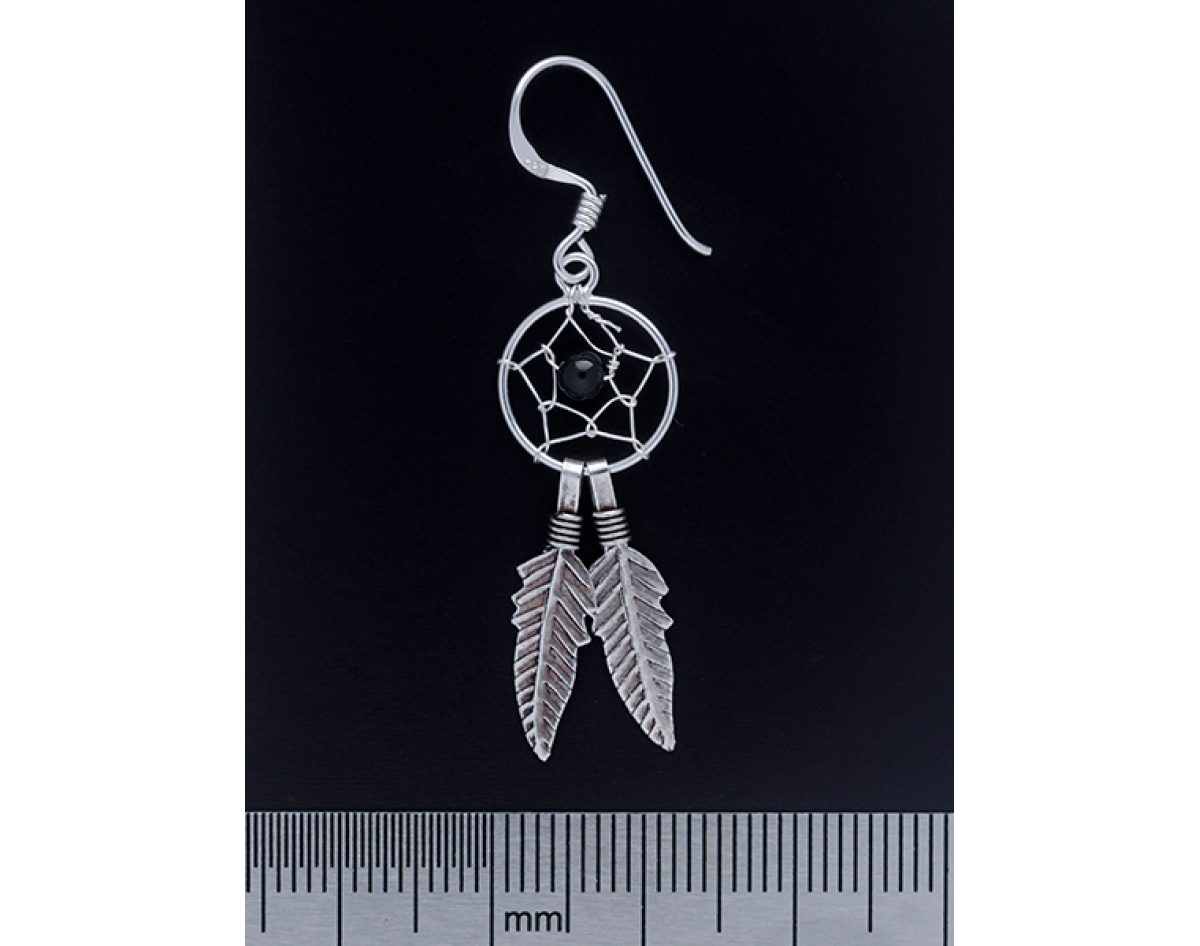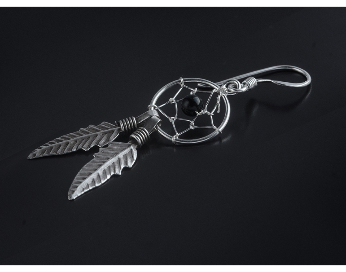Dream Catcher with a Black Stone (eas-043) Earring