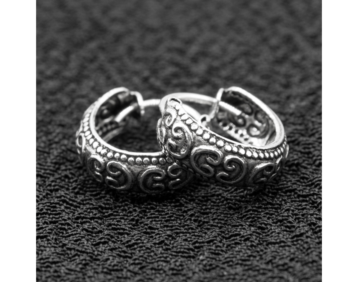 Earring, pirate ring with pattern (diameter 13 mm, width 5 mm, 925 silver) (eas-154)