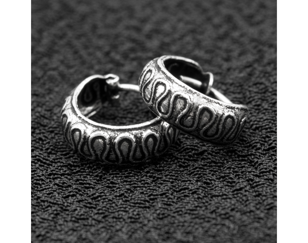 Earring, pirate ring with pattern (diameter 13 mm, width 5 mm, 925 silver) (eas-155)
