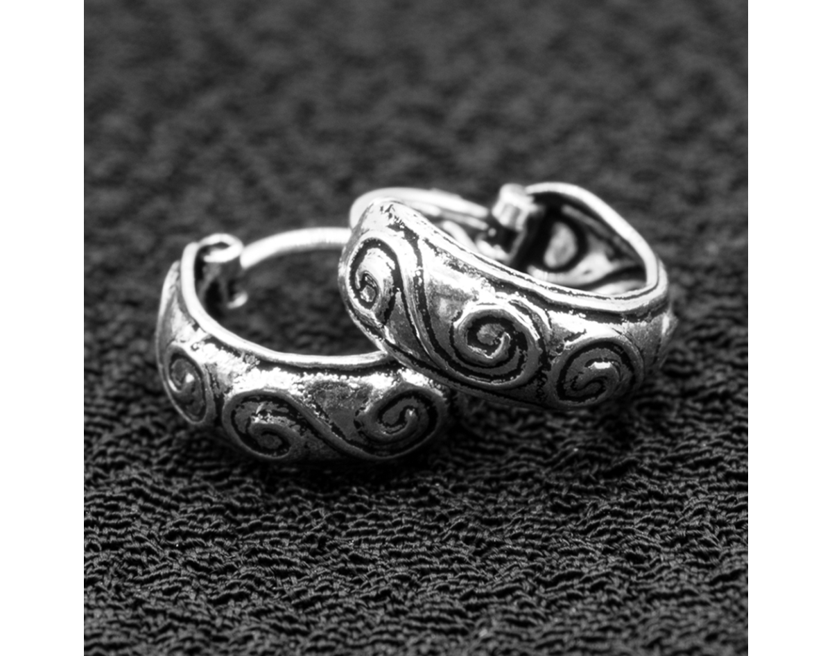 Earring, pirate ring with pattern (diameter 13 mm, width 5 mm, 925 silver) (eas-156)
