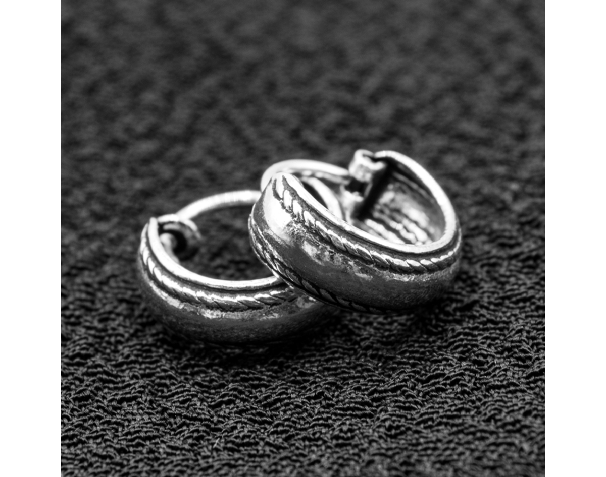 Earring, pirate ring with pattern (diameter 12 mm, width 5 mm, 925 silver) (eas-157)