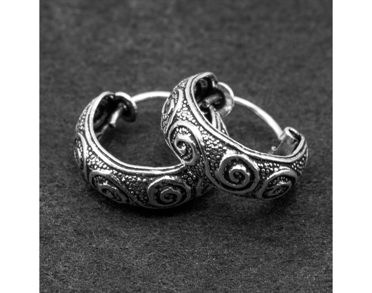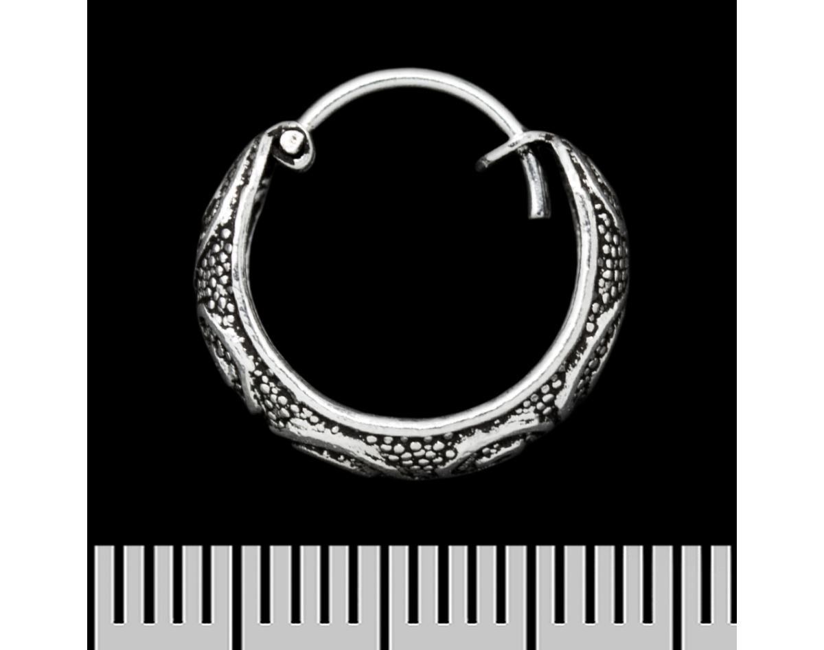 Earring, pirate ring with pattern (eas-165) diameter 16 mm, width 5 mm, 925 silver. The price is for 1 unit of goods.