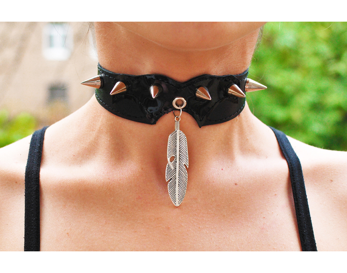 Feather Big Two-Sided Pendant (ar-008) (Steel Color) Collar