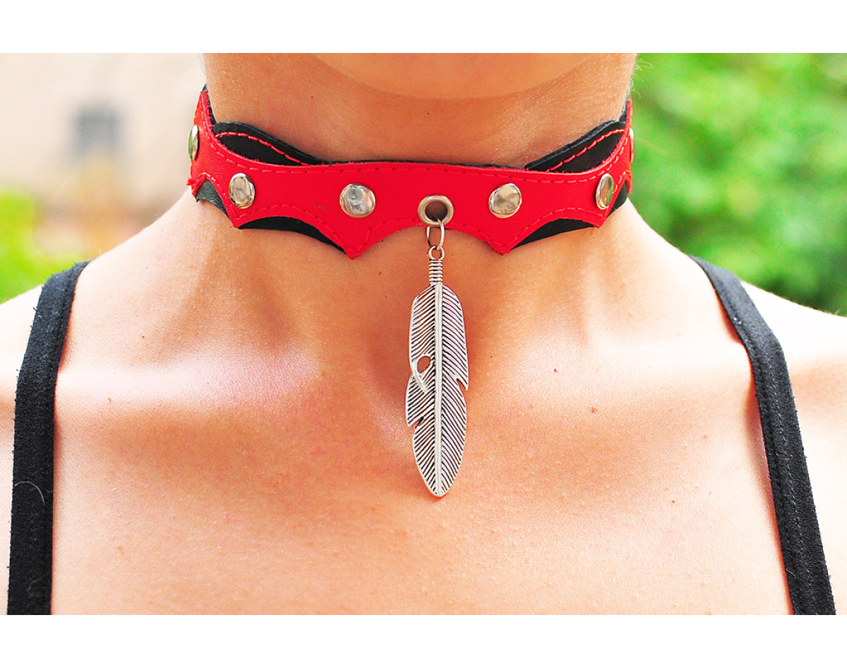 Feather Big Two-Sided Pendant (Steel Color) (ar-001) Collar