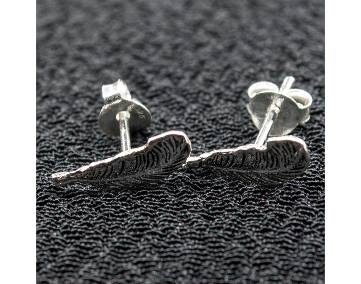 Feather stud earring (silver, 925 sterling silver) (sn-051)
