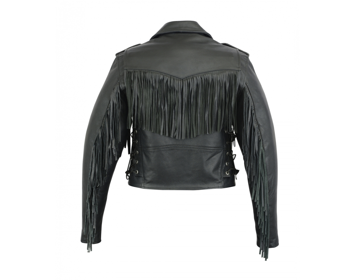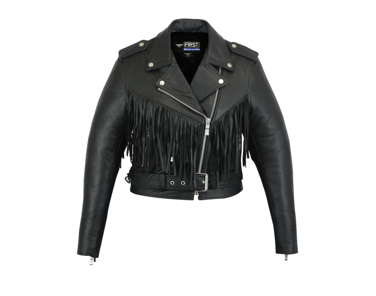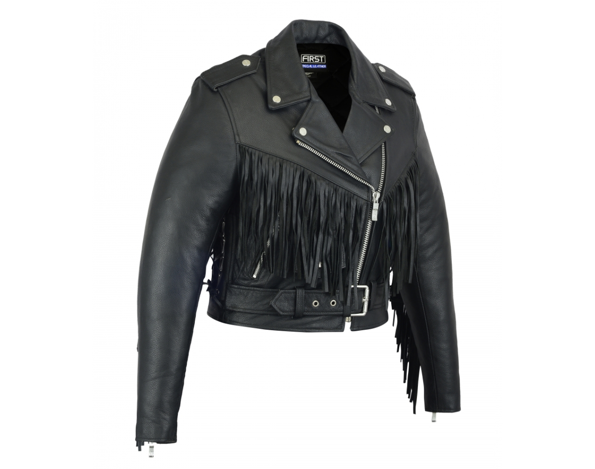 Old-school model First with fringe is made of high-quality natural soft calfskin, which makes the jacket durable and at the same time comfortable to wear.