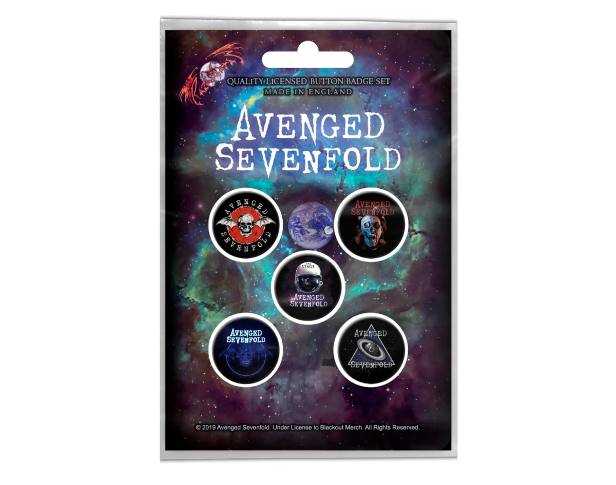 Gift set of badges. This product is officially licensed merchandise. Badges with a high-quality detailed image on a plastic base are equipped with a reliable metal pin on the back. The lot number is indicated on each icon on the reverse side. Each set of five icons is packed in a blister on a cardboard base with a stylized image of the band or album to which the specific set is dedicated, a presentable look, this is an ideal gift for true fans of the band. Made in England.