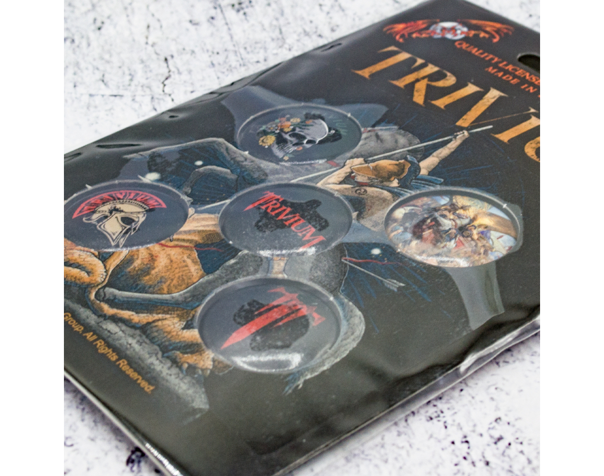 Gift set of badges. This product is officially licensed merchandise. Badges with a high-quality detailed image on a plastic base are equipped with a reliable metal pin on the back. The lot number is indicated on each icon on the reverse side. Each set of five icons is packed in a blister on a cardboard base with a stylized image of the band or album to which the specific set is dedicated, a presentable look, this is an ideal gift for true fans of the band. Made in England.