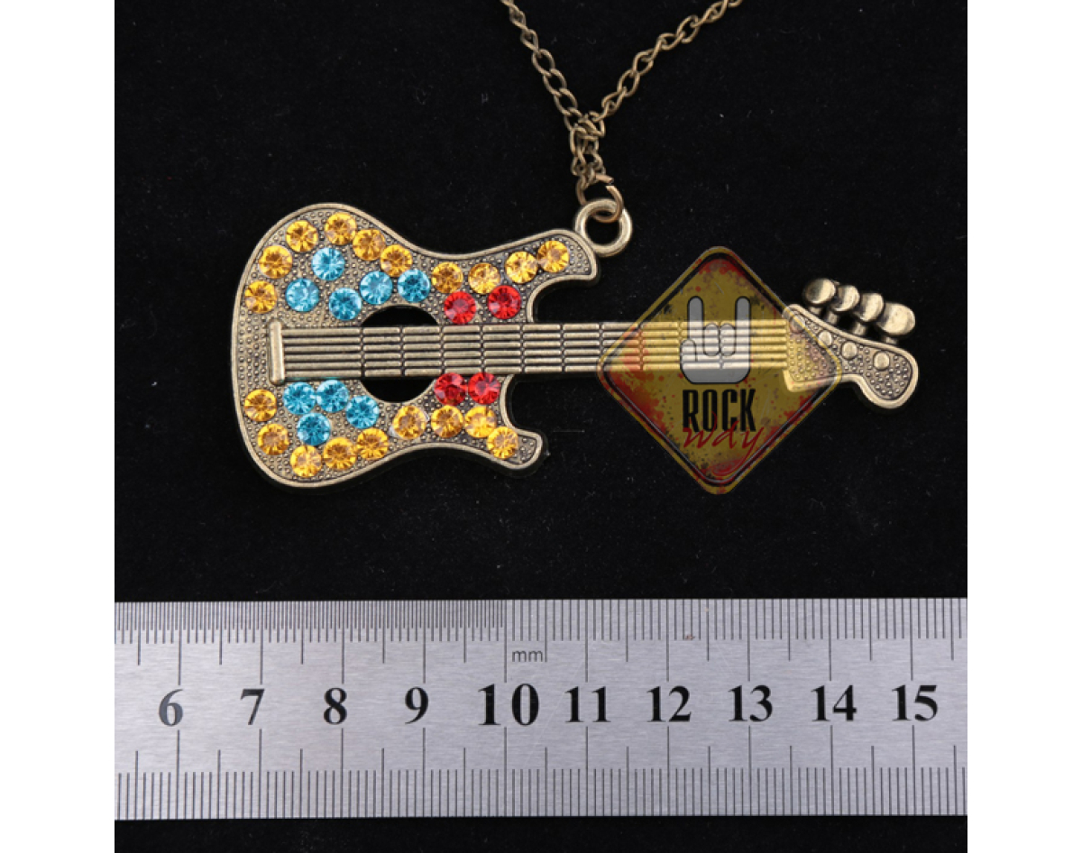 Guitar (Bronze Color, with Rhinestones) Pendant