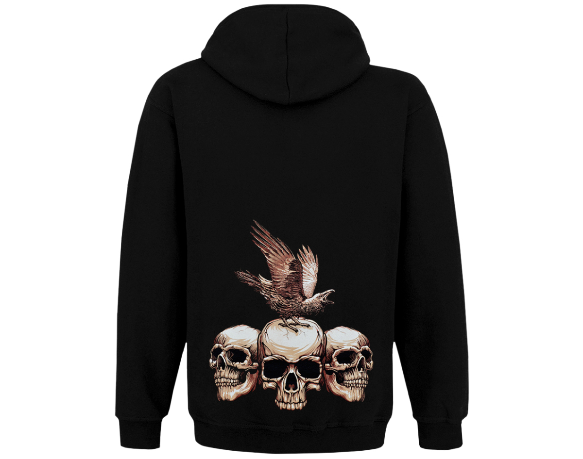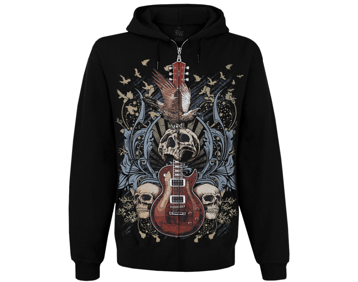 Guitar with Skulls and Ravens Kangaroo Pocket Hoodie with a Zipper