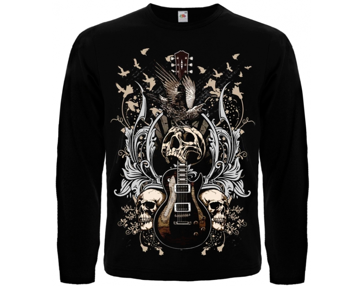 Guitar with Skulls and Ravens Long Sleeve T-Shirt