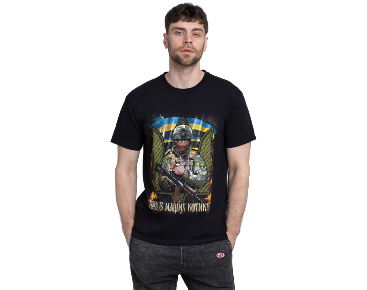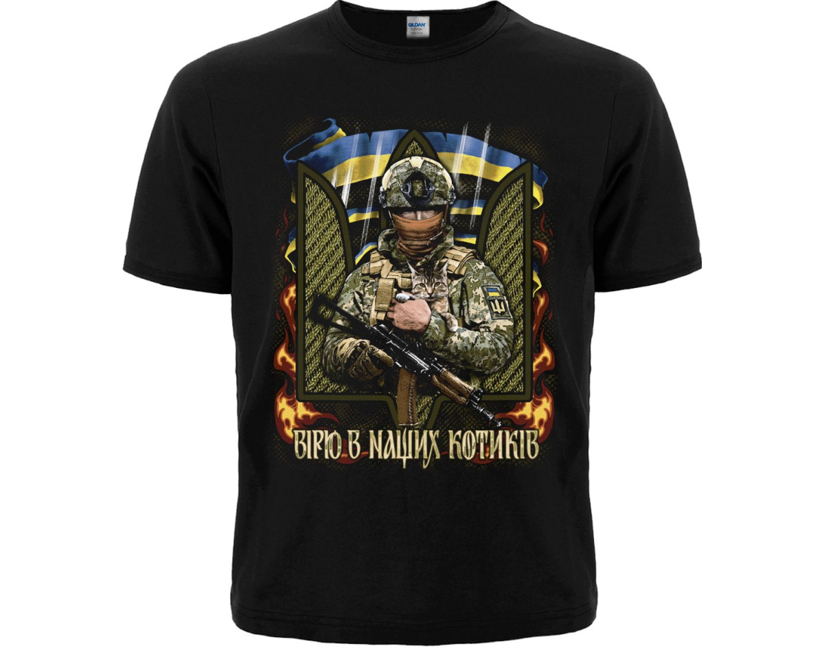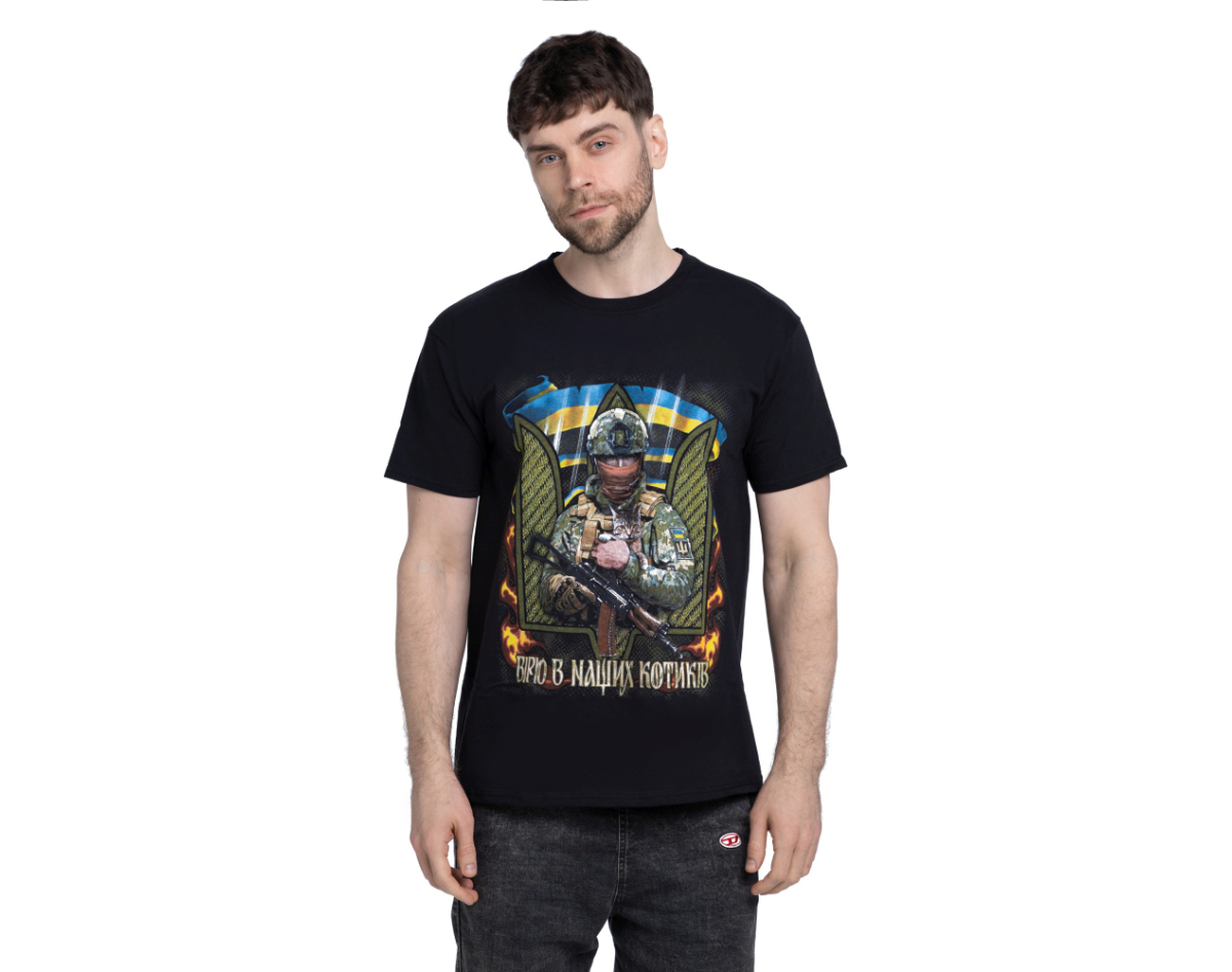 production: Gildan; fabric: 100% cotton (quality seams, neck does not stretch). Density 160 g / m², the picture is applied by the method of silk screen printing (does not crack, does not deteriorate due to washing, does not fade); picture: plastisol paint of EU production. Wash at a temperature of up to 30°