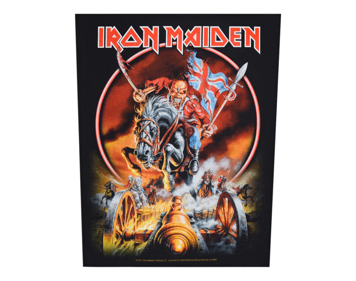 Iron Maiden "Maiden England" back patch (olbp-014) Height 35.5 cm, width at the top edge 29.5 cm, width at the bottom edge 26 cm This product is Officially Licensed Backpath merch. Back patch of high premium quality. The edges of the patch are trimmed with overlock, which is why the stitching looks as neat as possible. The image was applied using the stencil method, the high level of detail indicates the imperfect paint of the paint. The patch is sewn on, soft, perfectly repeatable on the waistband. Fabric warehouse: cotton/polyester. Made in Great Britain