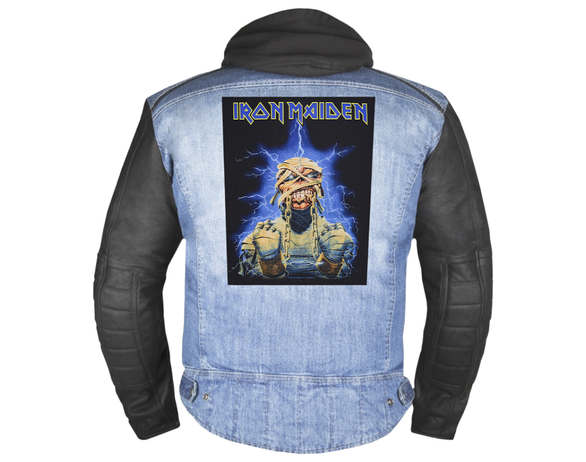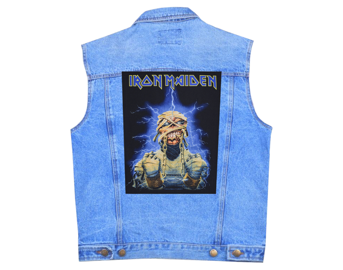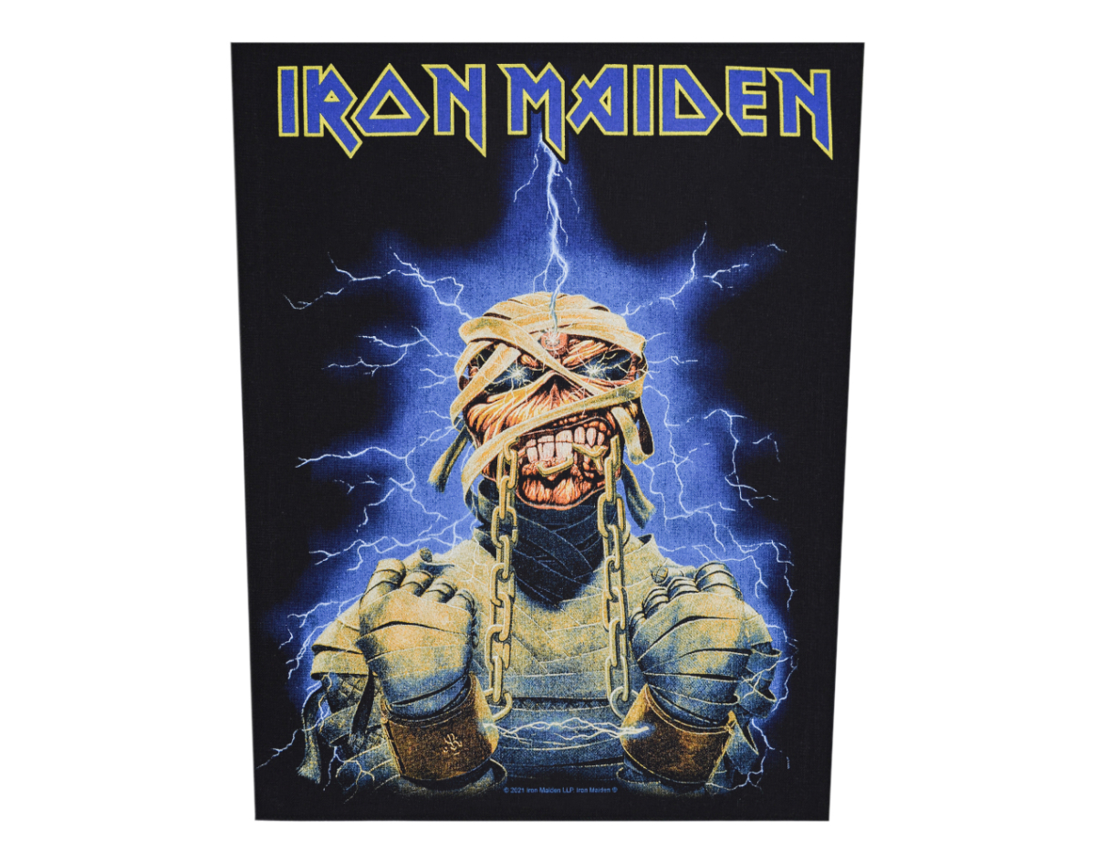 Iron Maiden back patch (Powerslave Eddie) (olbp-009) Height 35 cm, width at the top edge 28 cm, width at the bottom edge 25.5 cm This product is Officially Licensed Backpath merch. Back patch of high premium quality. The edges of the patch are trimmed with overlock, which is why the stitching looks as neat as possible. The image was applied using the stencil method, the high level of detail indicates the imperfect paint of the paint. The patch is sewn on, soft, perfectly repeatable on the waistband. Fabric warehouse: cotton/polyester. Made in Great Britain