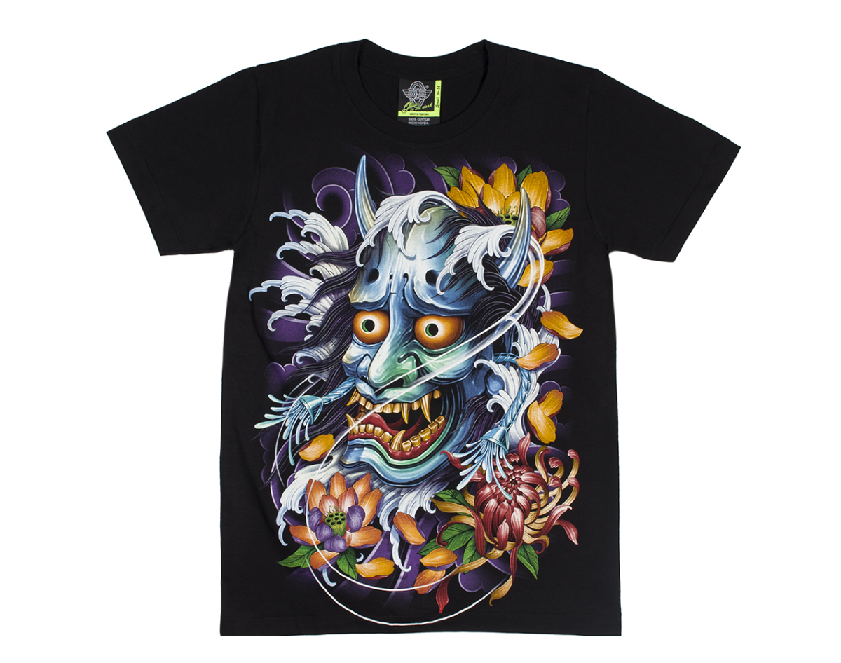 Japanese Demon Among Flowers (Glows in the Dark) T-Shirt