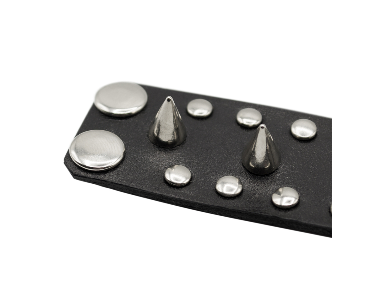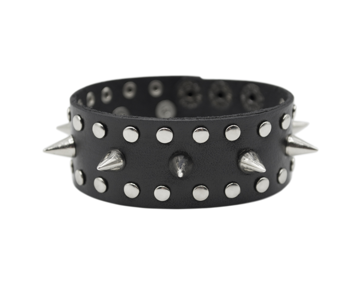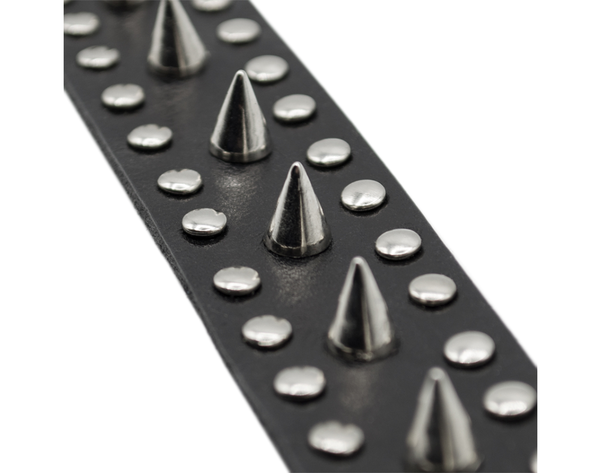 Leather bracelet with 9 small spikes and holnitens (bsl-005)