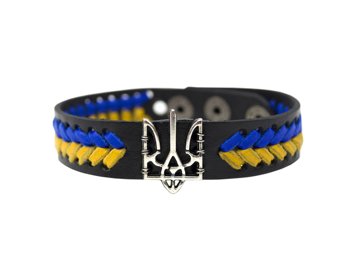 Leather bracelet (ptsbua-004) yellow and blue with the Trident