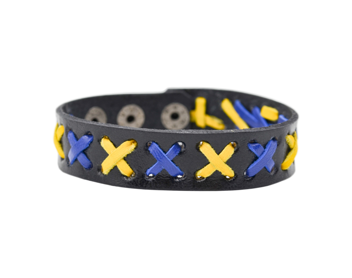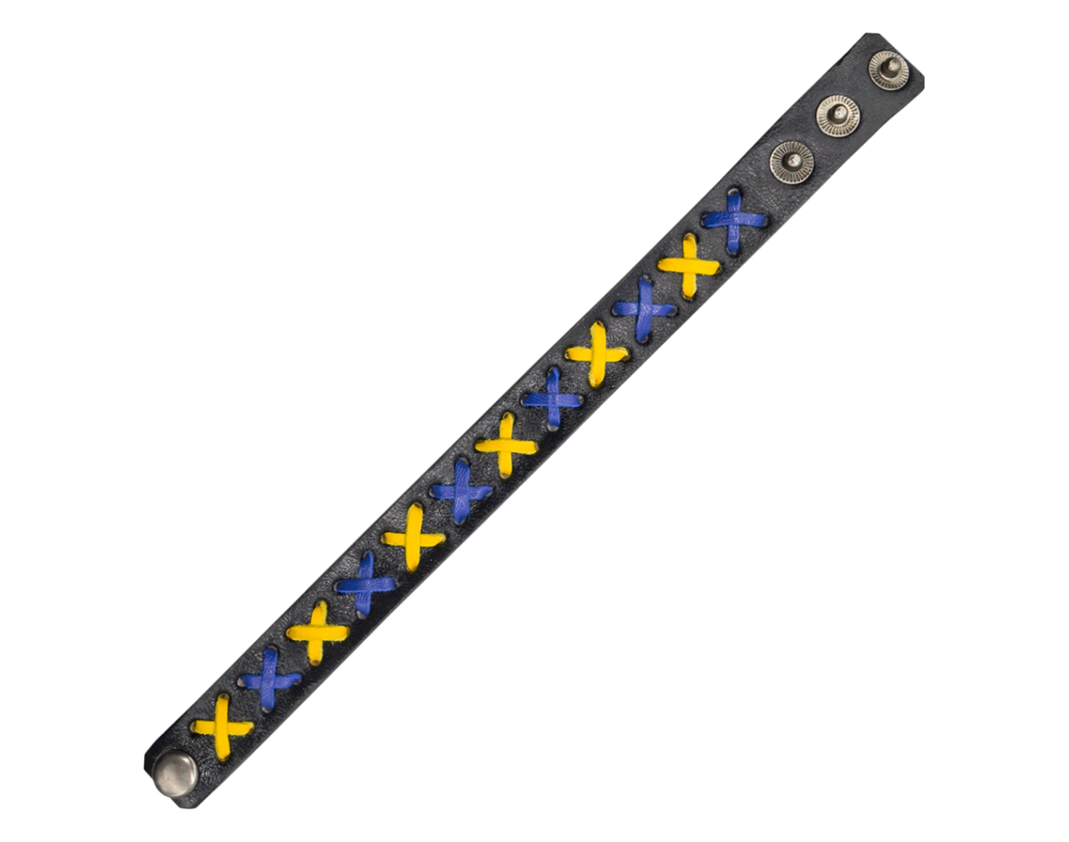 Leather bracelet with yellow and blue crosses (ptsbua-010)