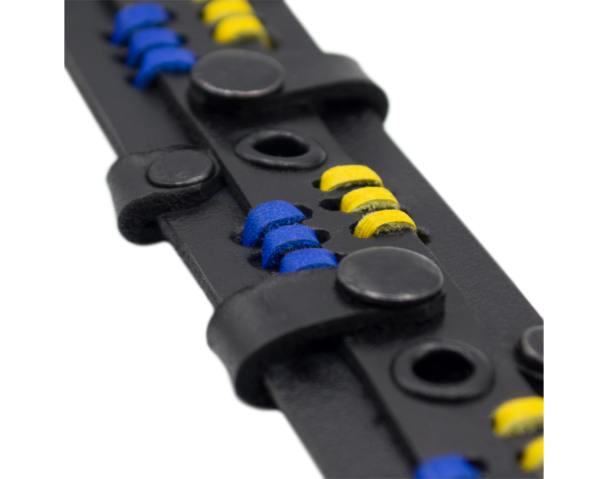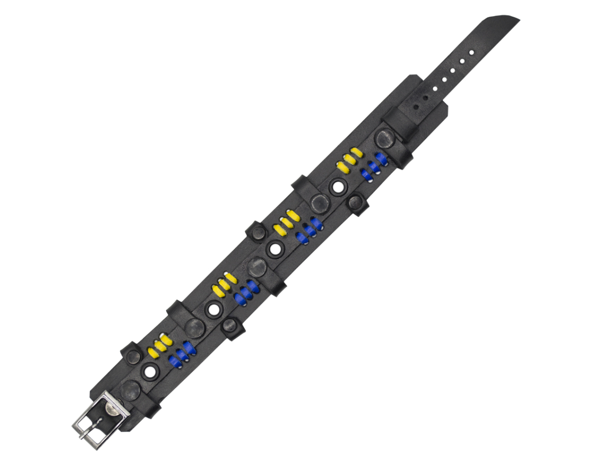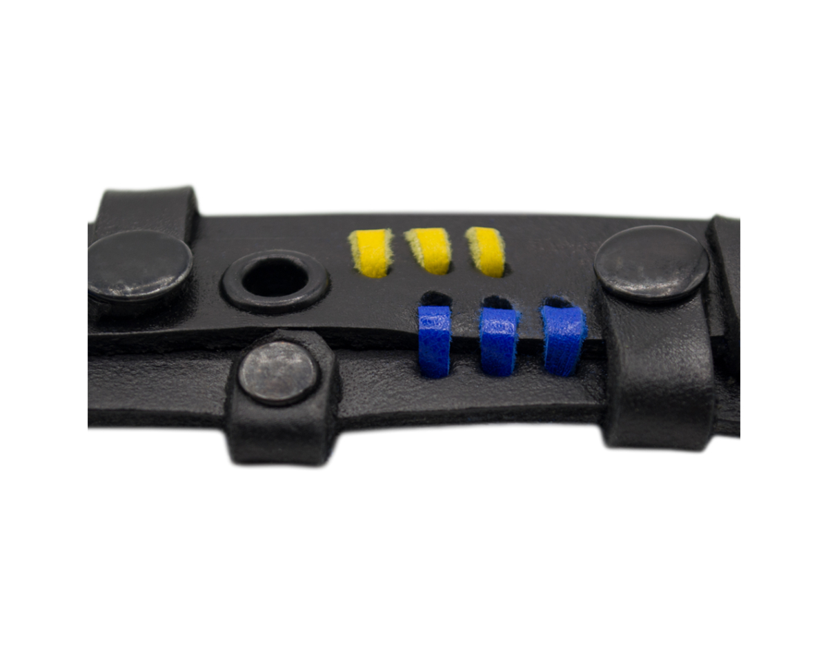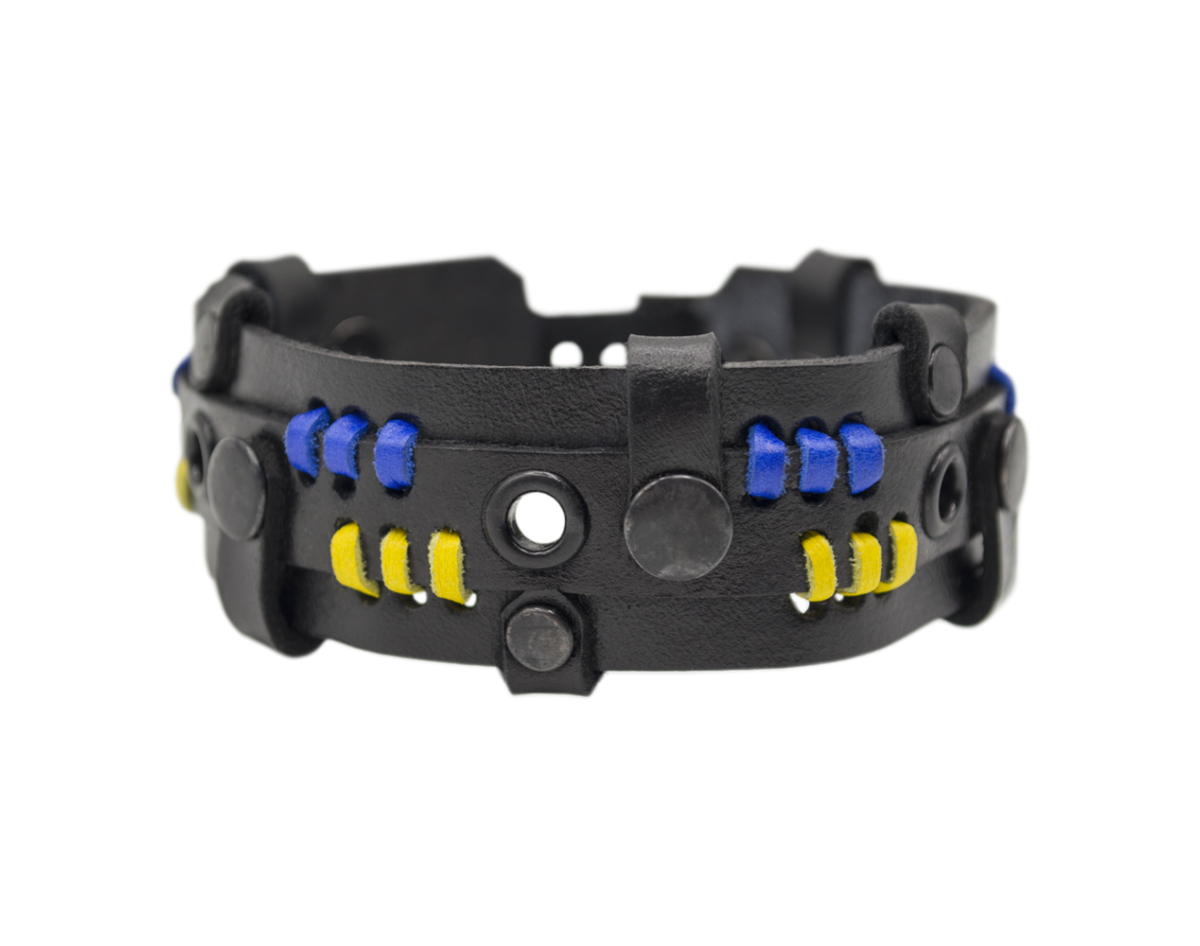 Leather bracelet with yellow-blue stripes (ptsbua-008)