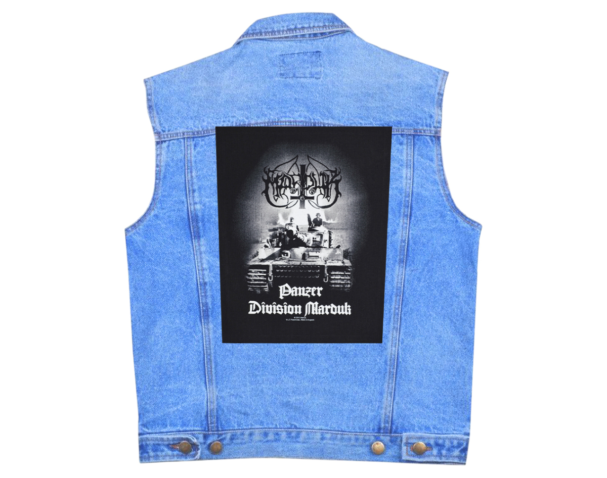 Marduk "Panzer Division Marduk" back patch (olbp-007) Height 35.5 cm, width at the top edge 29.5 cm, width at the bottom edge 26 cm This product is Officially Licensed Backpath merch. Back patch of high premium quality. The edges of the patch are trimmed with overlock, which is why the stitching looks as neat as possible. The image was applied using the stencil method, the high level of detail indicates the imperfect paint of the paint. The patch is sewn on, soft, perfectly repeatable on the waistband. Fabric warehouse: cotton/polyester. Made in Great Britain