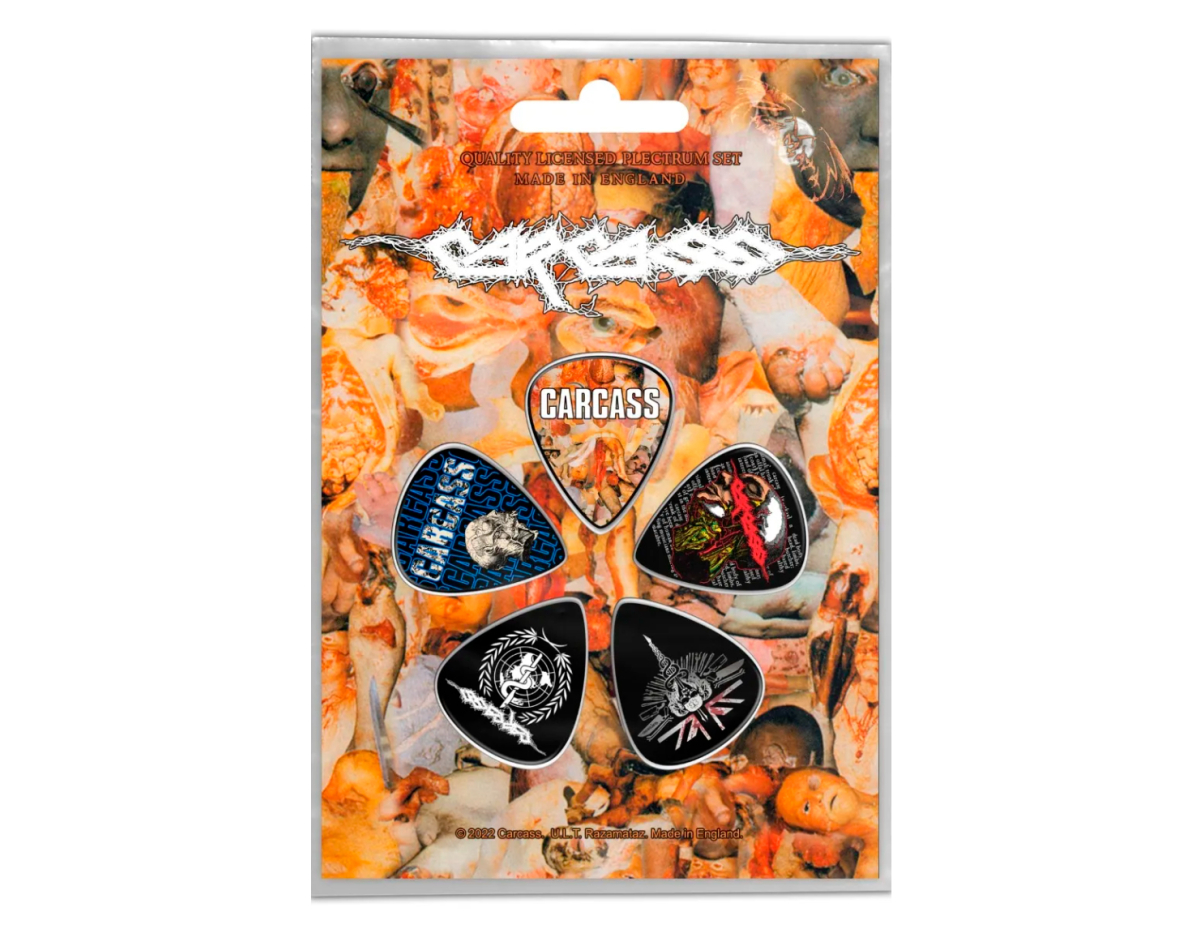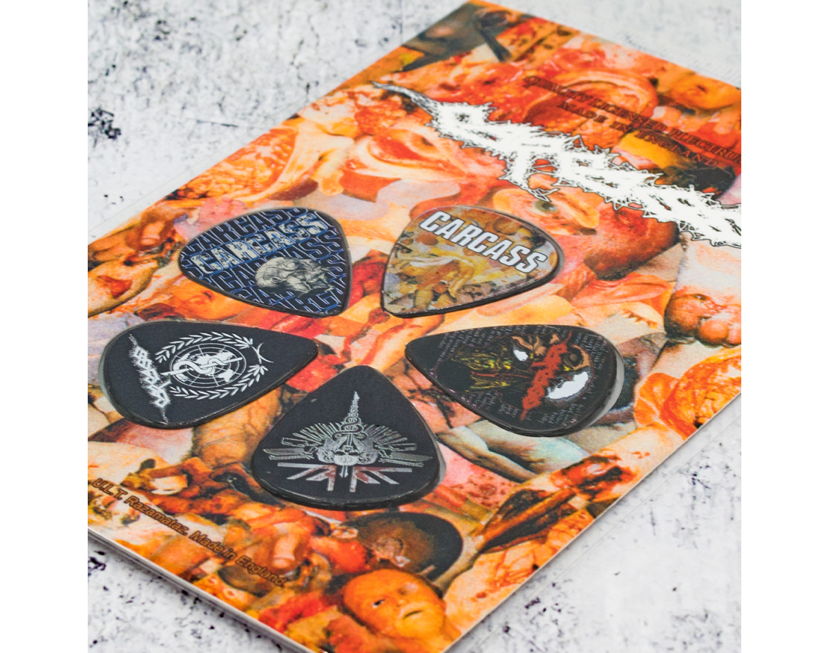 Gift set of mediators. This product is an official licensed merch (Officially Licensed). Picks with high-quality detailed image, made of PVC, thickness 1.14 mm, flexibility corresponds to picks of medium classification. Each set of five picks is packed in a blister on a cardboard base with a stylized image of the group or album to which a specific set is dedicated, has a presentable appearance, it is an ideal gift for true fans of the group, for beginners and professional musicians and as just a really beautiful and original souvenir. Made in England.