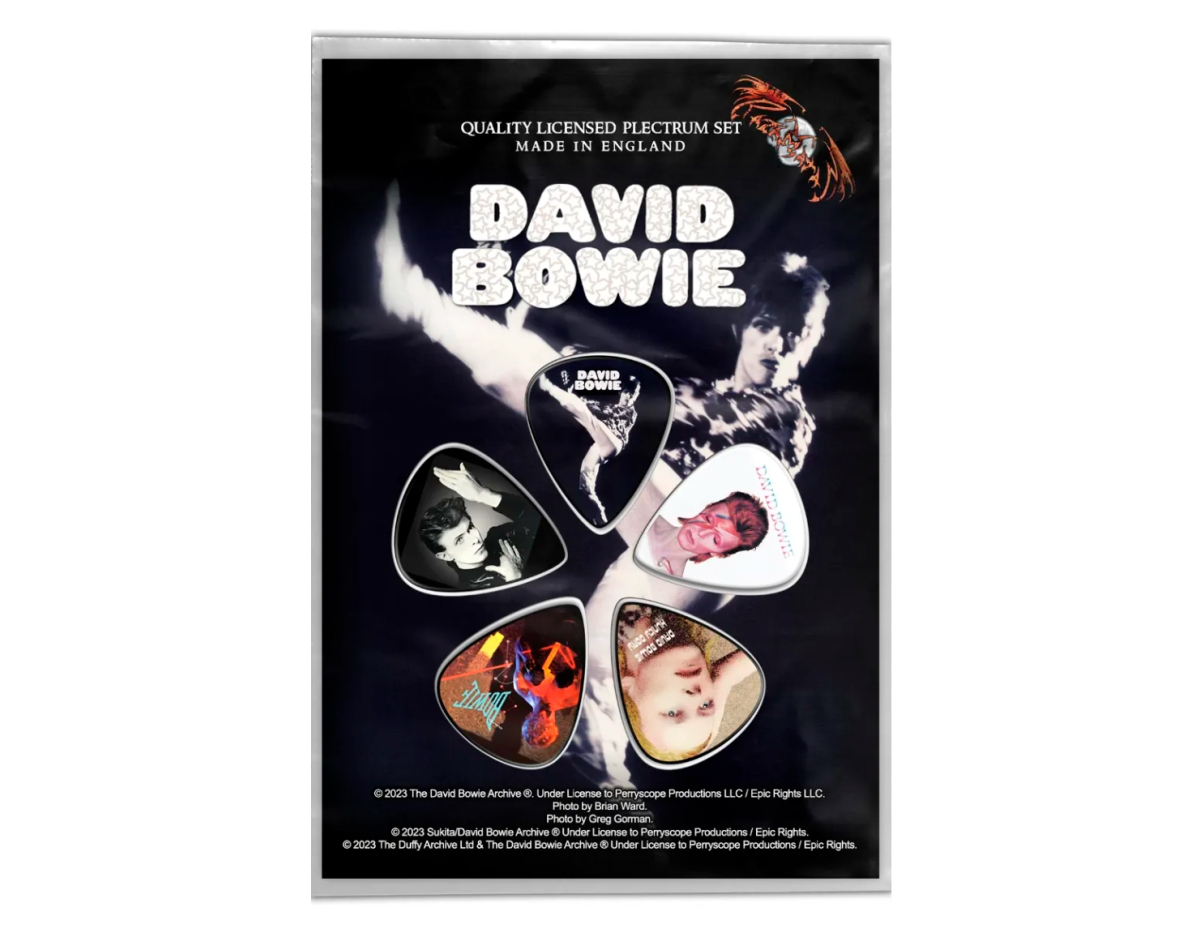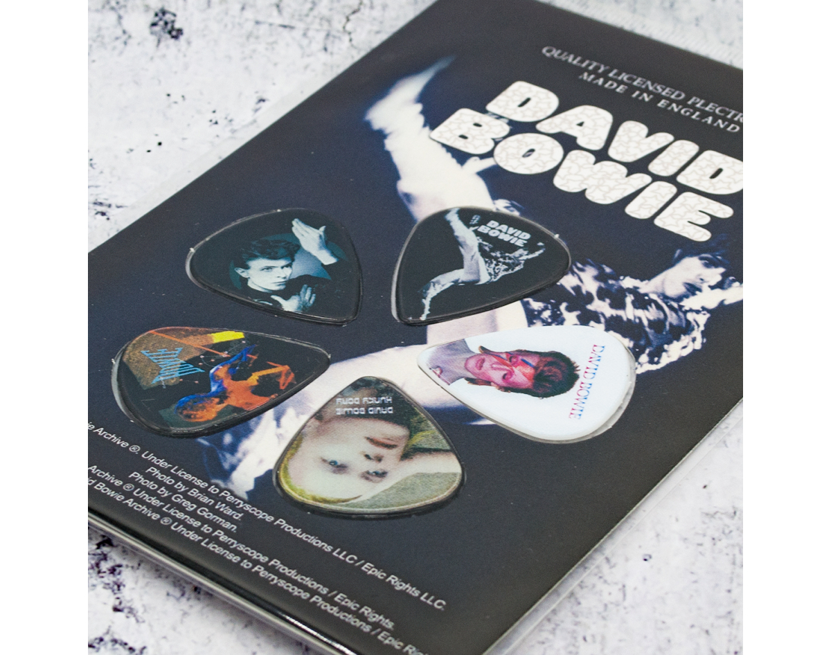 Gift set of mediators. This product is an official licensed merch (Officially Licensed). Picks with high-quality detailed image, made of PVC, thickness 1.14 mm, flexibility corresponds to picks of medium classification. Each set of five picks is packed in a blister on a cardboard base with a stylized image of the group or album to which a specific set is dedicated, has a presentable appearance, it is an ideal gift for true fans of the group, for beginners and professional musicians and as just a really beautiful and original souvenir. Made in England.