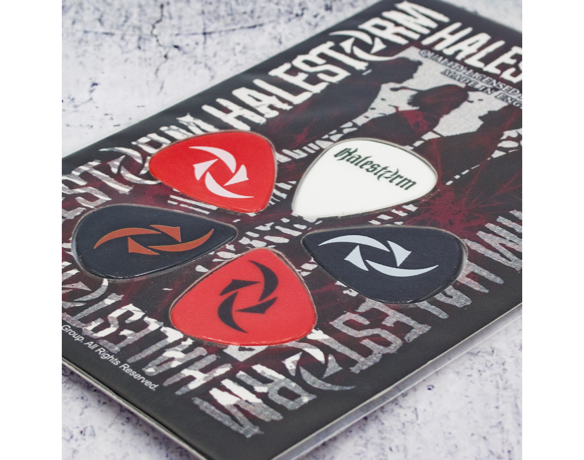 Gift set of mediators. This product is an official licensed merch (Officially Licensed). Picks with high-quality detailed image, made of PVC, thickness 1.14 mm, flexibility corresponds to picks of medium classification. Each set of five picks is packed in a blister on a cardboard base with a stylized image of the group or album to which a specific set is dedicated, has a presentable appearance, it is an ideal gift for true fans of the group, for beginners and professional musicians and as just a really beautiful and original souvenir. Made in England.
