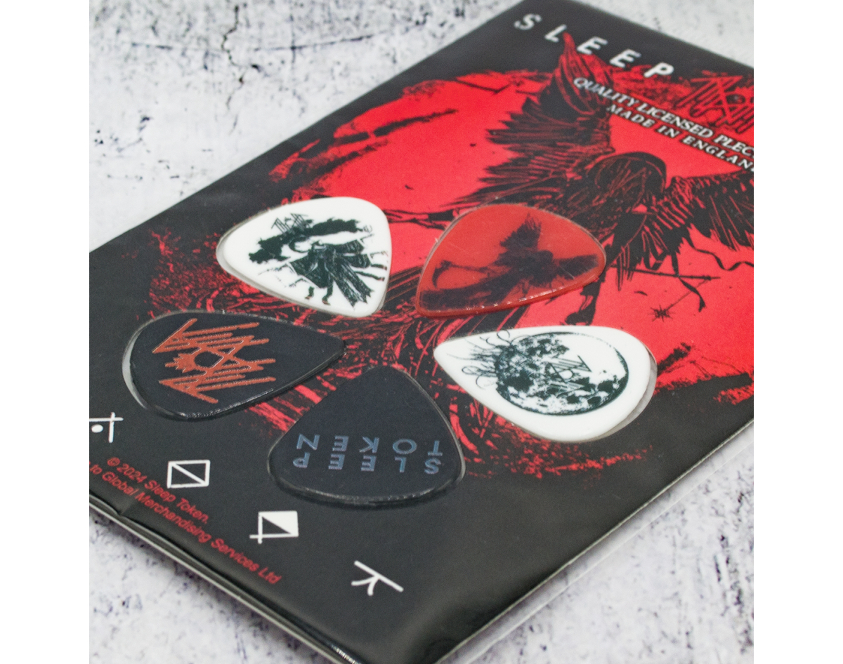Gift set of mediators. This product is an official licensed merch (Officially Licensed). Picks with high-quality detailed image, made of PVC, thickness 1.14 mm, flexibility corresponds to picks of medium classification. Each set of five picks is packed in a blister on a cardboard base with a stylized image of the group or album to which a specific set is dedicated, has a presentable appearance, it is an ideal gift for true fans of the group, for beginners and professional musicians and as just a really beautiful and original souvenir. Made in England.