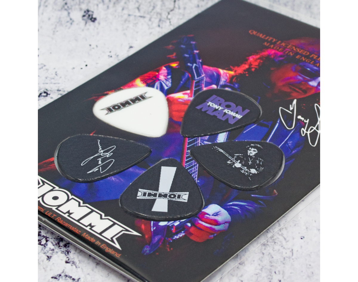Gift set of mediators. This product is an official licensed merch (Officially Licensed). Picks with high-quality detailed image, made of PVC, thickness 1.14 mm, flexibility corresponds to picks of medium classification. Each set of five picks is packed in a blister on a cardboard base with a stylized image of the group or album to which a specific set is dedicated, has a presentable appearance, it is an ideal gift for true fans of the group, for beginners and professional musicians and as just a really beautiful and original souvenir. Made in England.