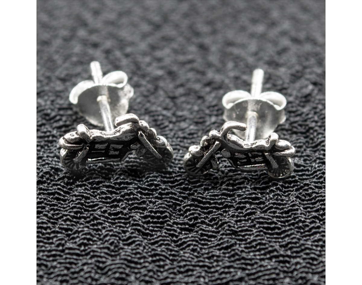 Motorcycle stud earring (silver, 925 sterling) (sn-053)