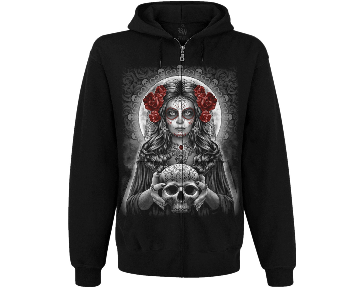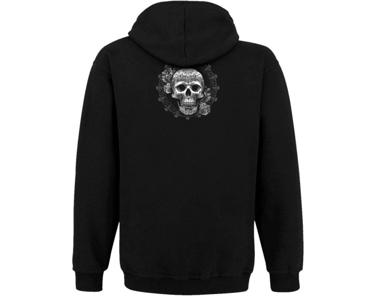 Muerte (skull and roses) Kangaroo Pocket Hoodie with a Zipper